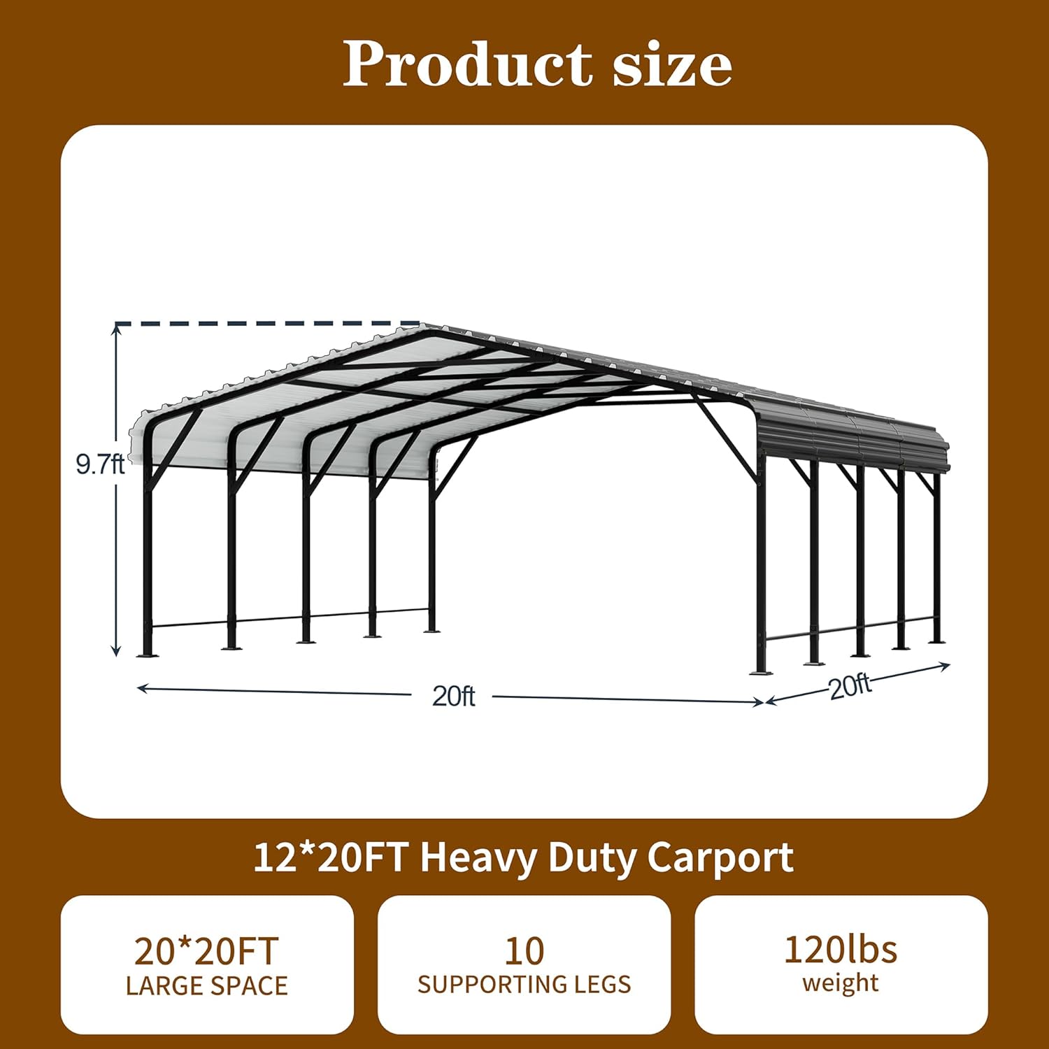 - 【Large Portable Garage】 This 20x20 ft heavy-duty Carport provides ample space for storing vehicles, boats, goods, and more. The Carport canopy is perfect for parties, commercial exhibitions, outdoor activities, weddings, storage sheds, and more.