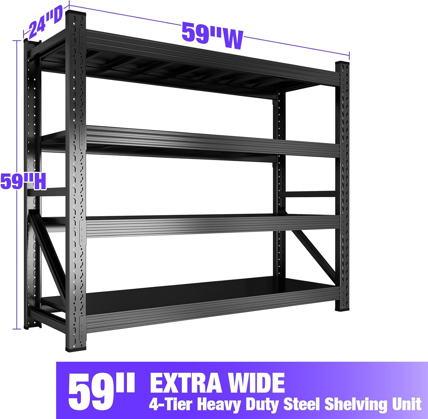 Metal Garage Shelving Heavy Duty, 4-Tier Adjustable Wire Storage Garage Shelves, 6000 LBS Loads Industrial Shelving Units for Garages, Warehouses, Kitchen, Black, 59" W x 24" D x 59" H, 2 Pack