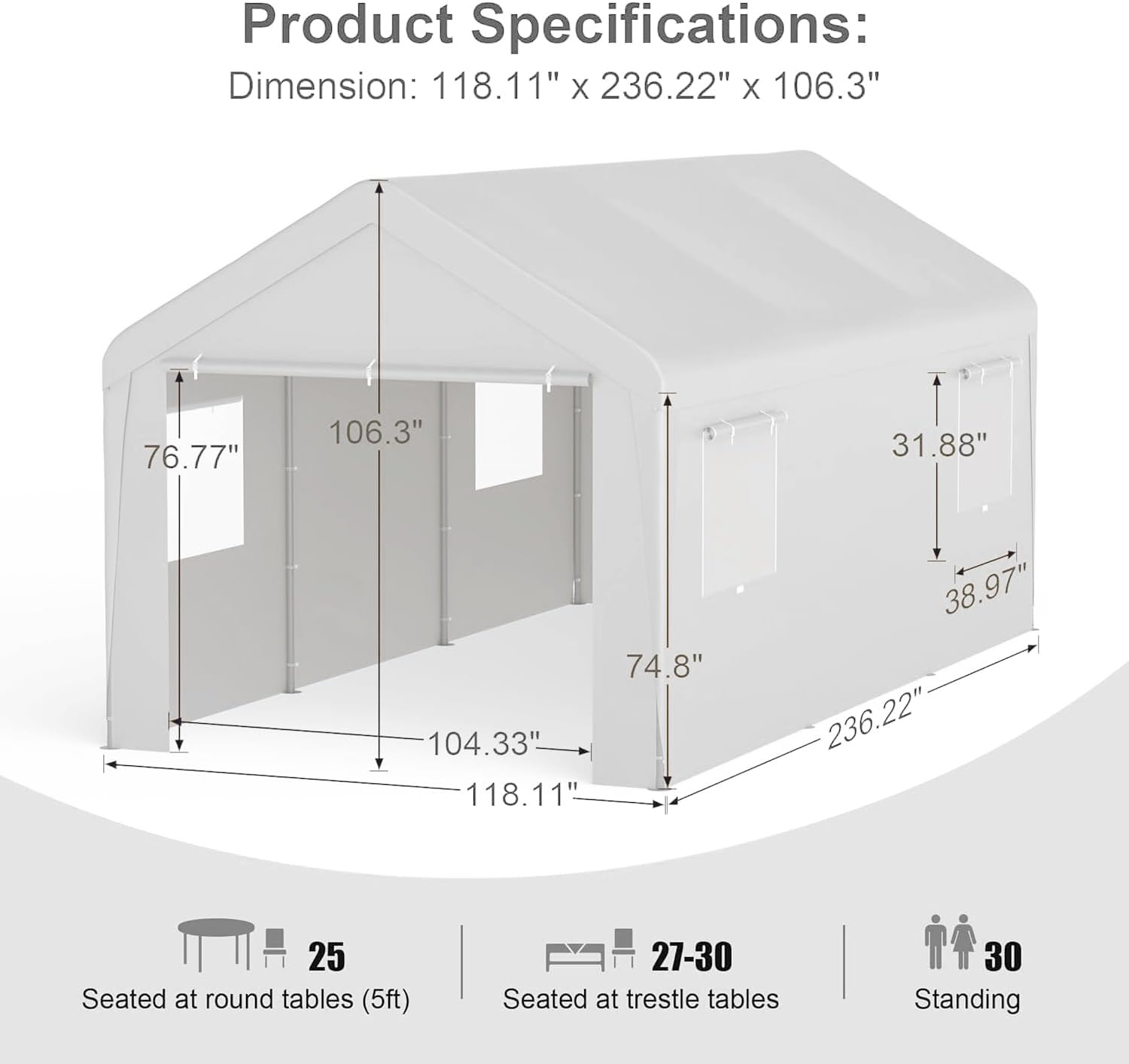 - Product Dimensions : 236.22"L x 118.11"W x 106.3"H
