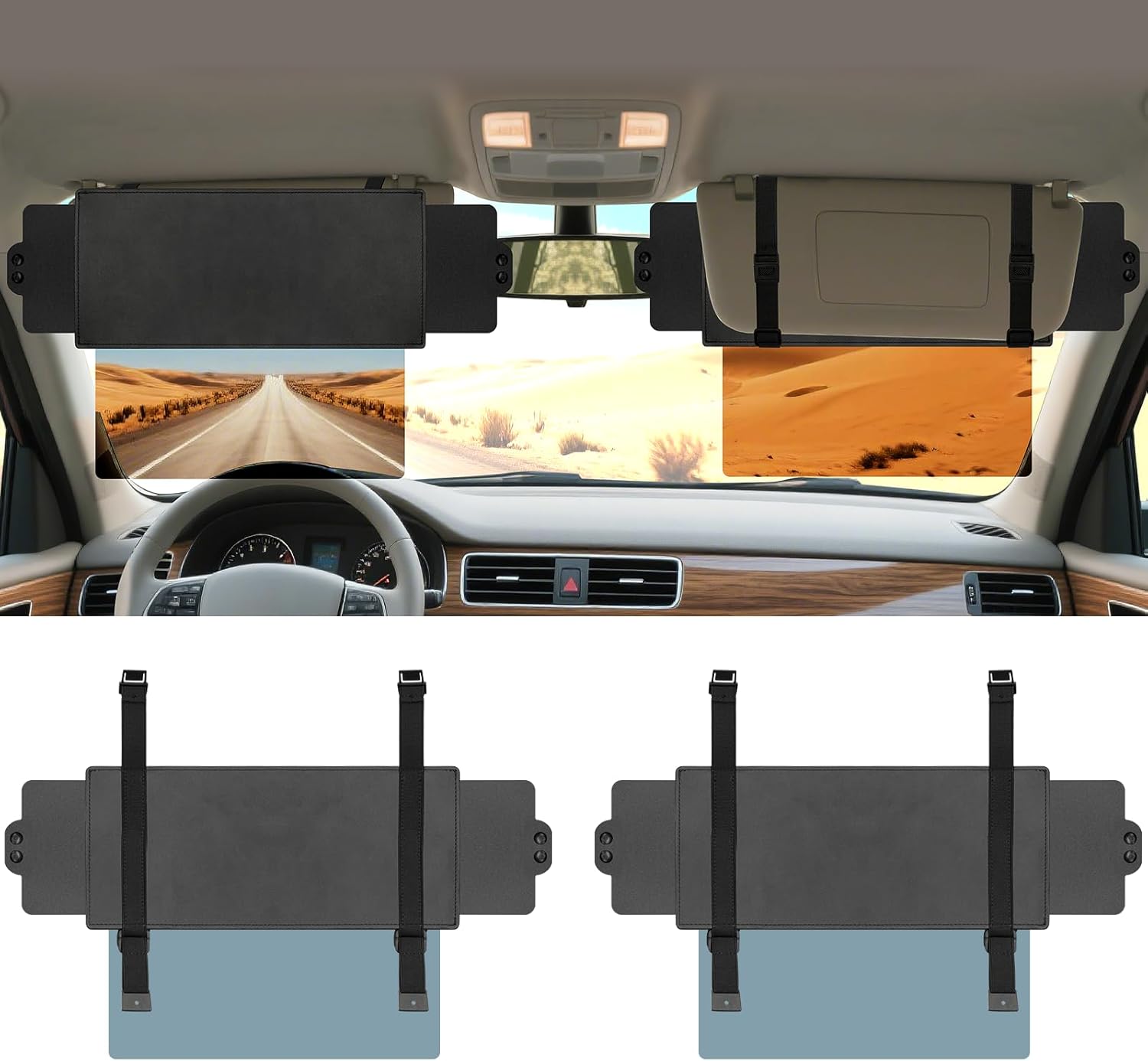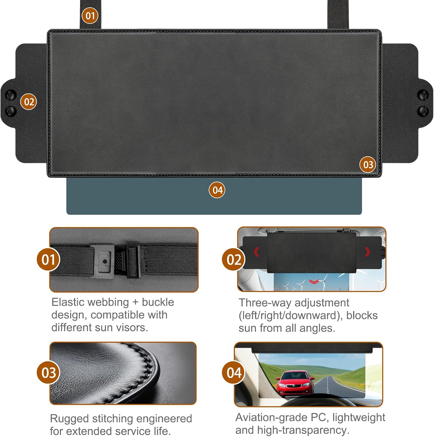 - 【True Universal Fit with Zero Visual Obstruction】 Rigorously tested on 500+ models (sedans/SUVs/trucks). Patented adjustable buckles accommodate OEM visor thicknesses. Downward visor extender: 10.55in(L) x 4.40in(W), side visor extender: 4.7in(L) x 4.25in(W).