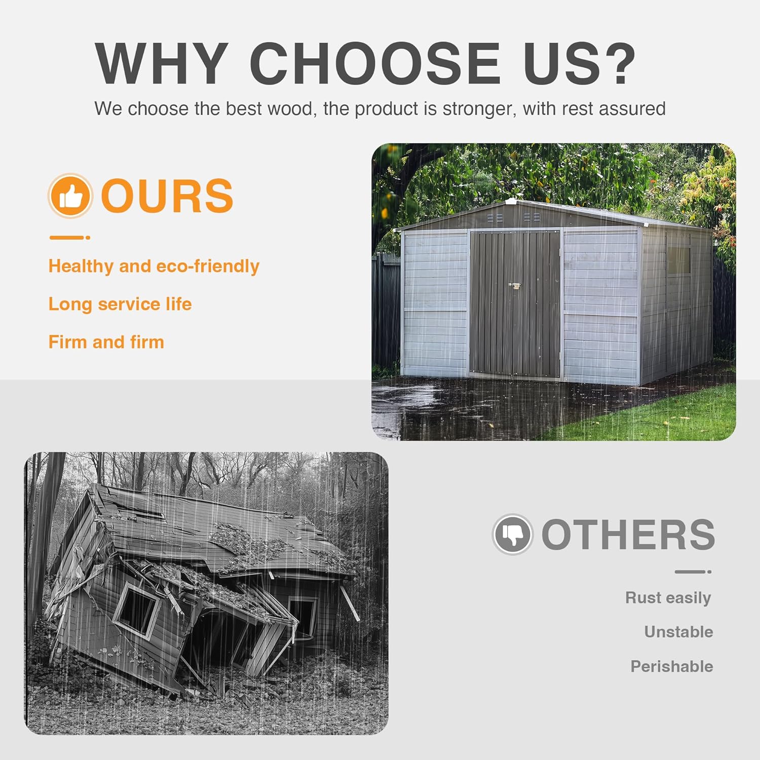- [Durable Cedar + Metal Roof] — Withstands Weather Year-Round: Crafted from waterproof-treated natural cedar wood and topped with a reinforced steel roof with drainage grooves, this shed offers excellent protection against wind, rain, and snow. It stays strong and beautiful through the seasons.