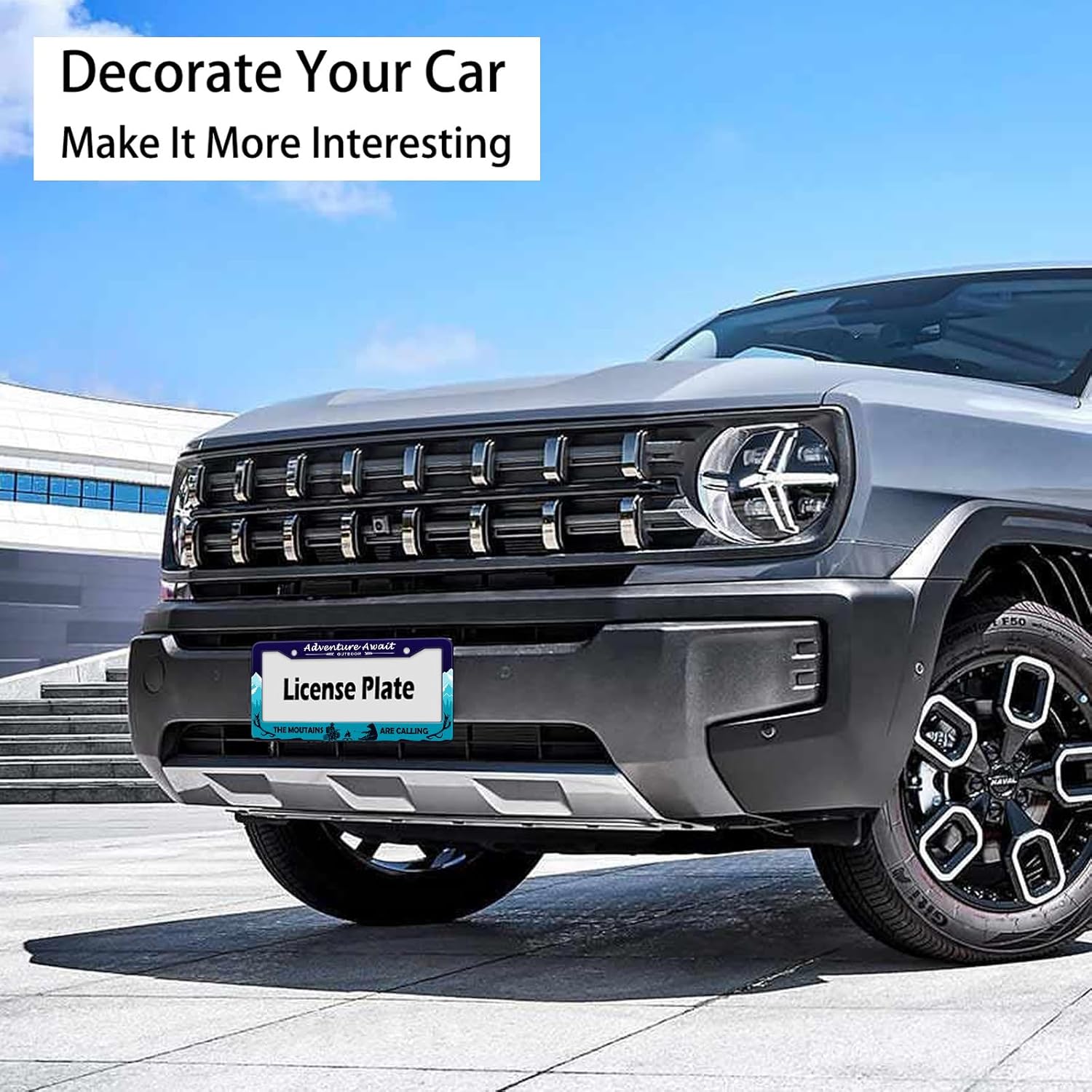 Adventure Await License Plate Frame, Mountains Forest Bear Outdoor License Plate Holder Cover, Metal Aluminum Rustproof Car Accessories for Men Women, Great Gift for Hiking Camping Enthusiasts