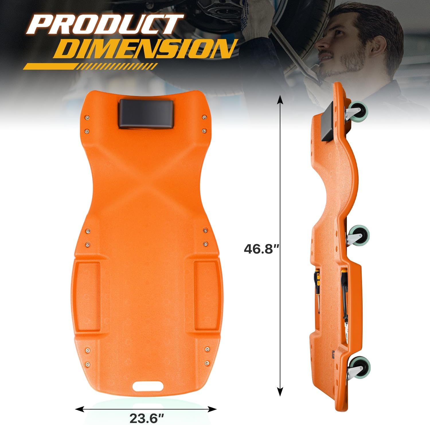Magshion Mechanic Creeper with Padded Headrest & Tool Trays – 440 lbs Capacity, Rolling Garage Creeper with 6 Swivel Wheels, Lightweight & Portable Under Car Creeper for Auto Repair (Orange)