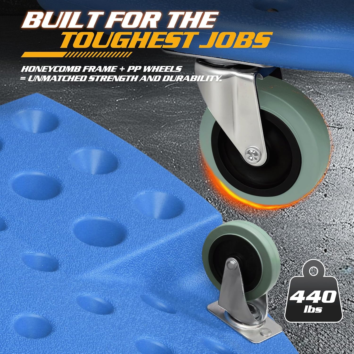 Magshion Mechanic Creeper with Padded Headrest & Tool Trays – 440 lbs Capacity, Rolling Garage Creeper with 6 Swivel Wheels, Lightweight & Portable Under Car Creeper for Auto Repair (Blue)