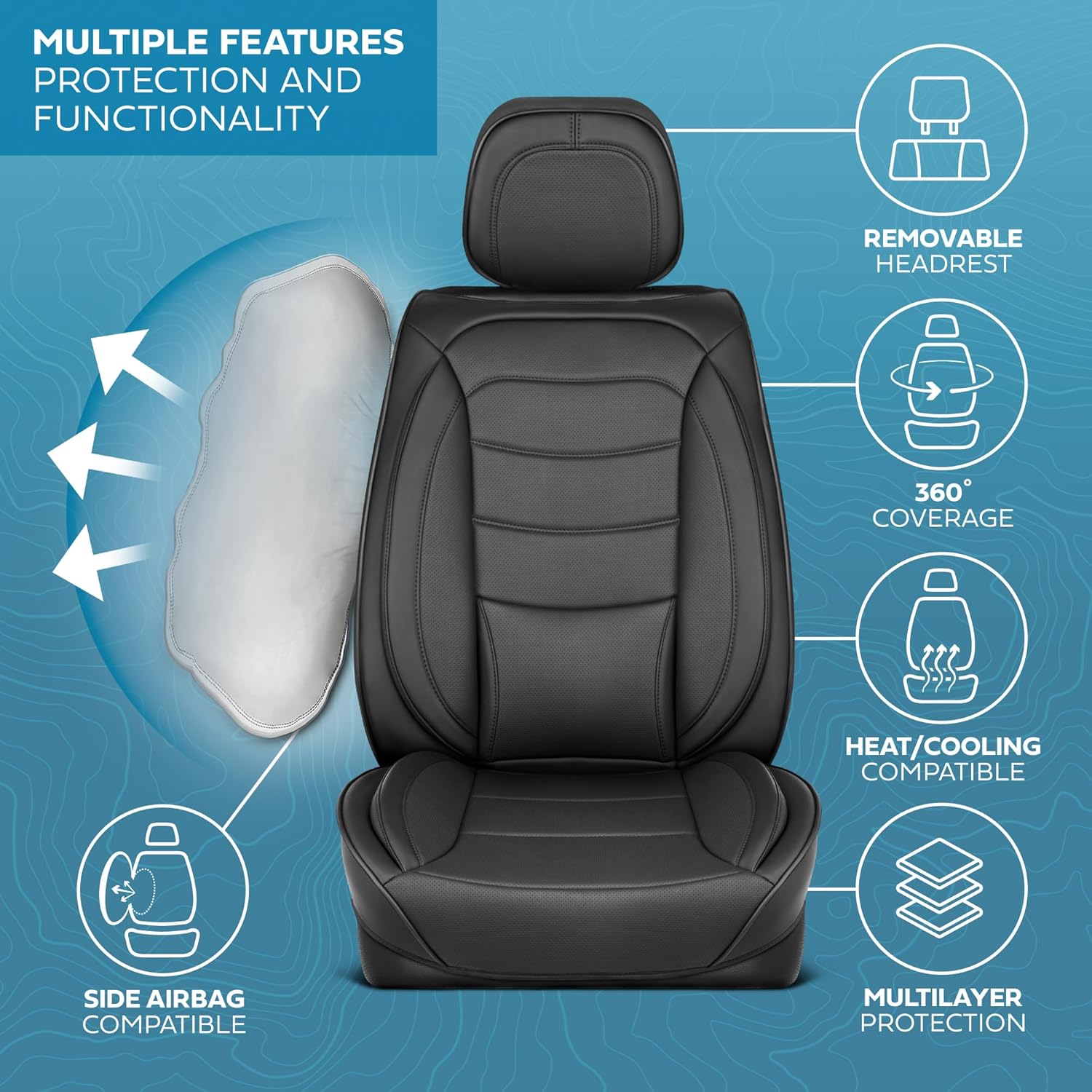 - ULTIMATE PROTECTION: MotorBox faux leather car seat covers offer ultimate protection against spills, stains, dirt, and wear. Designed to shield your seats from daily damage, these covers help maintain the original condition of your car’s interior, ensuring durability and extending the lifespan of your vehicle’s seats. Not just for cars, these are leather seat covers for trucks & SUVs too!
