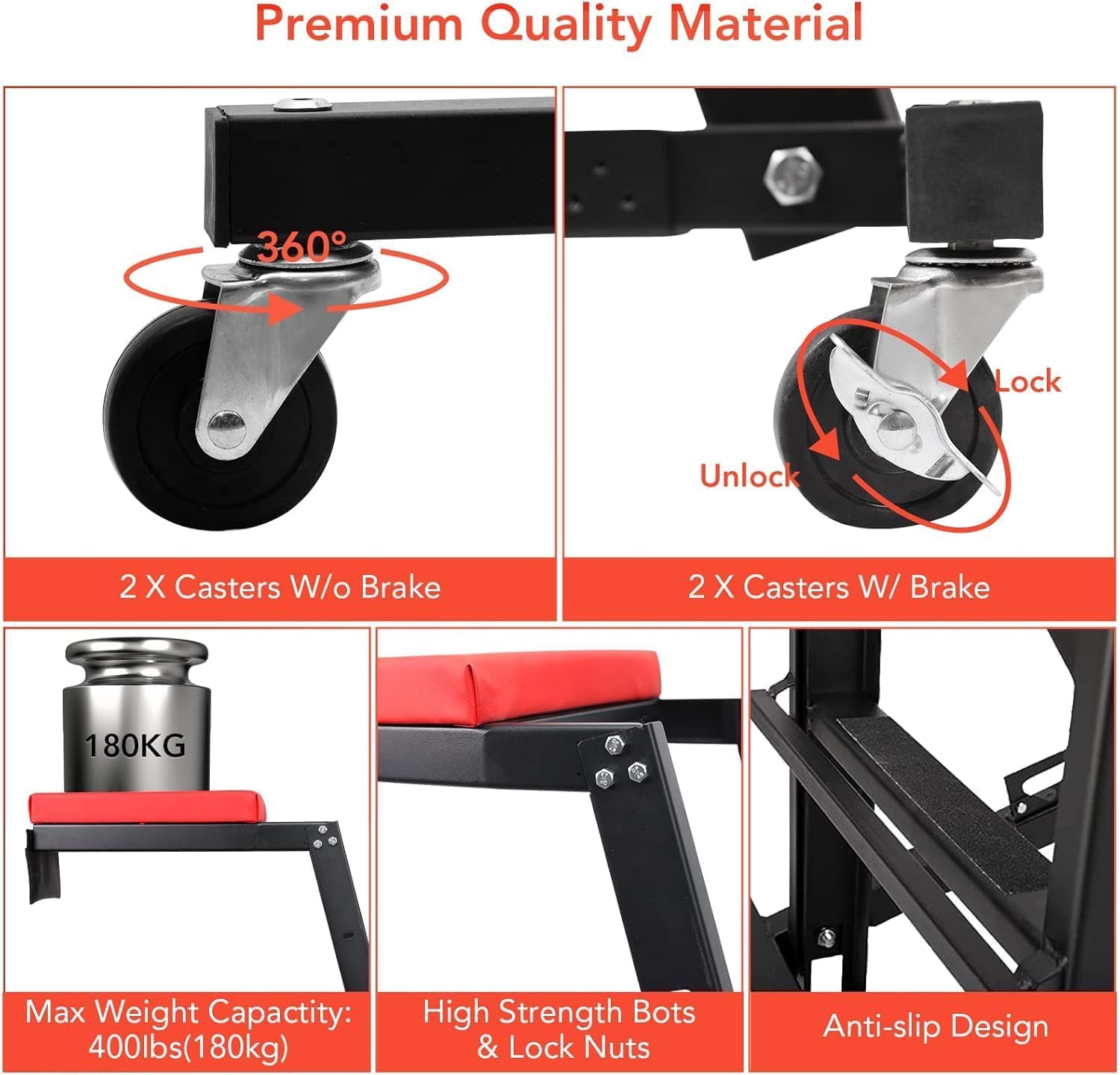 - Comfort-Focused & Tool-Friendly Design Includes a thick, high-density foam pad for added comfort during long jobs, and a convenient tool pouch for quick access to essential tools. Perfect for mechanics working on lifted pickups, trucks, or cars.