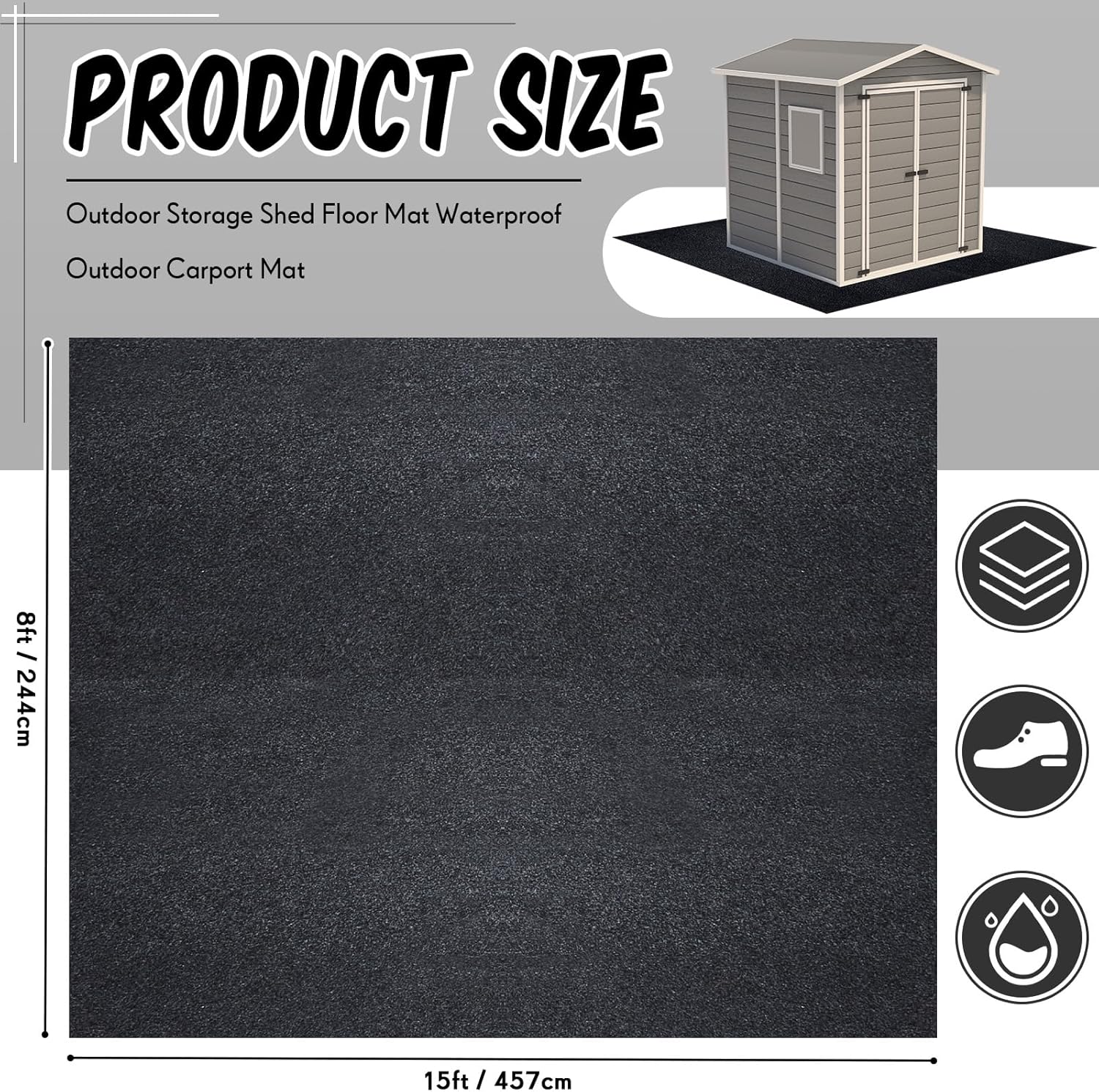 Haull Outdoor Storage Shed Floor Moat Waterproof Outdoor Carport Mat Thickened Soft Patio Furniture Pad Washable with Non Slip Backing, Storage Shed Not Included(8 x 15 ft)
