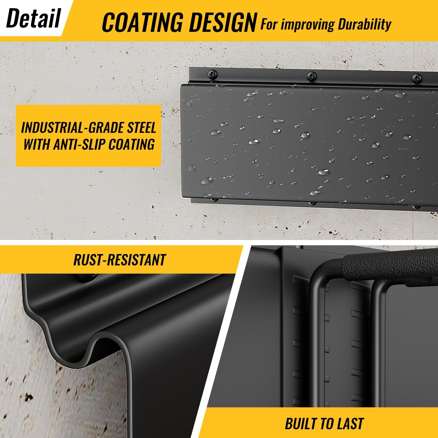 - 【Heavy-Duty Garage Tool Rack – 32" Rail, Holds Up to 360 lbs】Built with reinforced steel, this garage tool rack features a 32-inch wall-mounted rail and is designed to securely hold shovels, rakes, and other heavy garden tools. Perfect for any garage or garden shed.