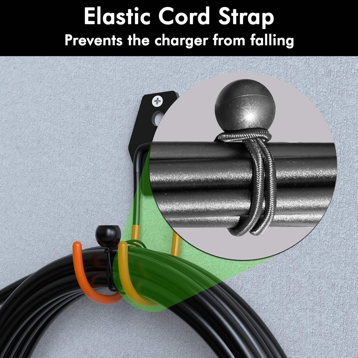 - Anti-Slip PVC Cover & Rust-Resistant Coating: The EV charging cable holder is designed with a rust-resistant powder-coated finish and a non-slip PVC sleeve, ensuring your cable stays securely in place while preventing wear and damage