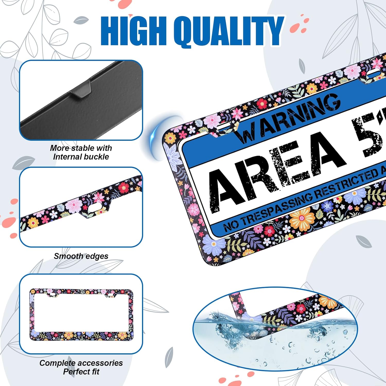 • Unique Design: The tag frame for license plate adopts a beautiful flower pattern design, making your license plate frame stand out instantly and become a beautiful scenery on the road. This license plate frame holder adopts a narrow frame design to ensure that all license plate details are clearly visible, improve clarity and meet regulatory requirements.