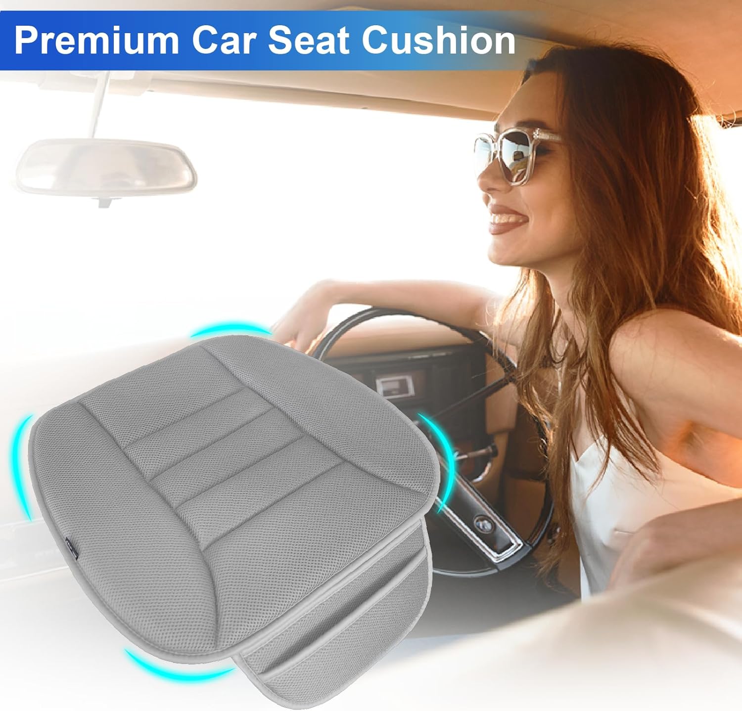 Premium Car Seat Cushion, Driver Cushion with Comfort Memory Foam & Non-Slip Rubber Bottom, Car Seat Pad Works with 95% of Vehicles and Office Chair or Home - 4D Gray