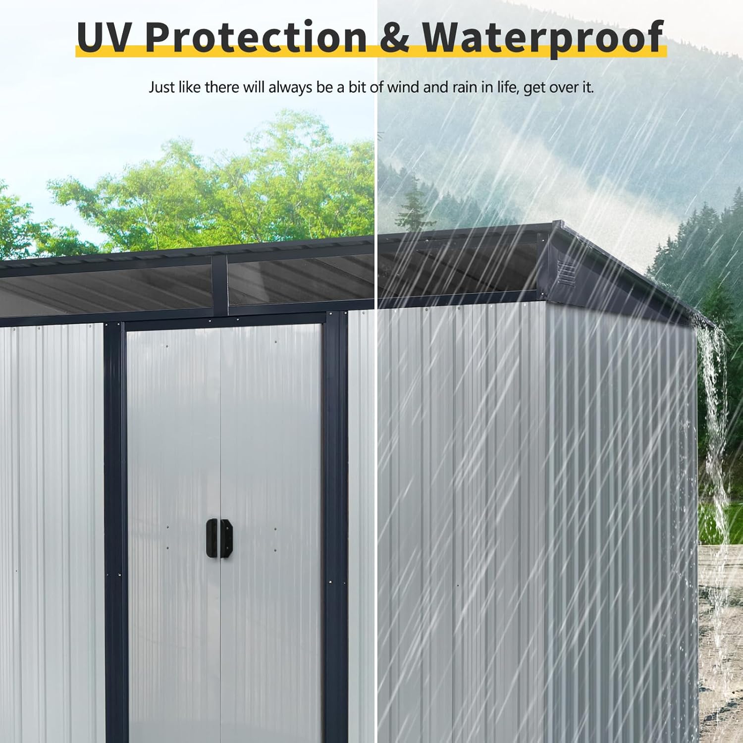 - 【Robust Metal Shed Construction】 As a Metal Shed With Floor & Transparent Plate, it features galvanized steel for corrosion-resistance, UV-resistance, and moisture protection,durability in various weather conditions. The Black+White finish adds a sleek look.