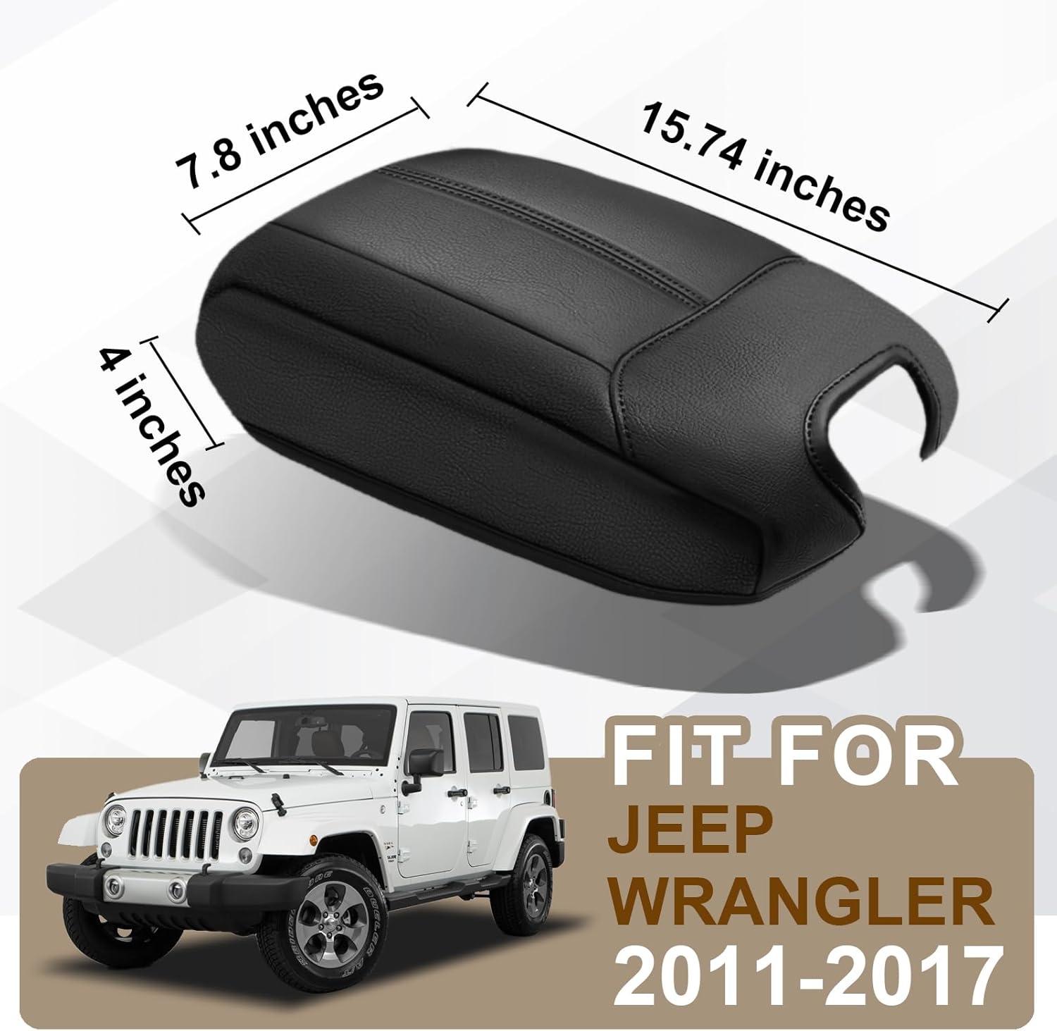 Muslogy Center Console Armrest Cover Compatible with Jeep Wrangler JK JKU 2011-2017 Comfort Armrest Pad Arm Rest Cushion Vegan Leather Protector Black Regular Thick