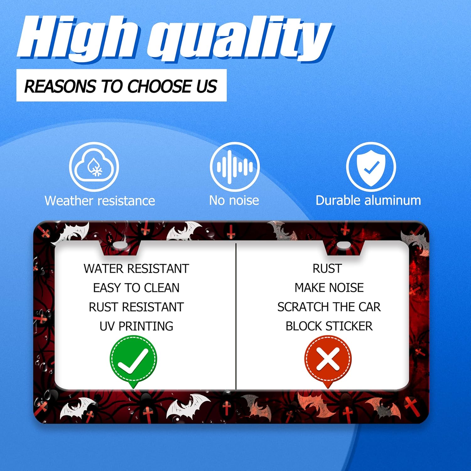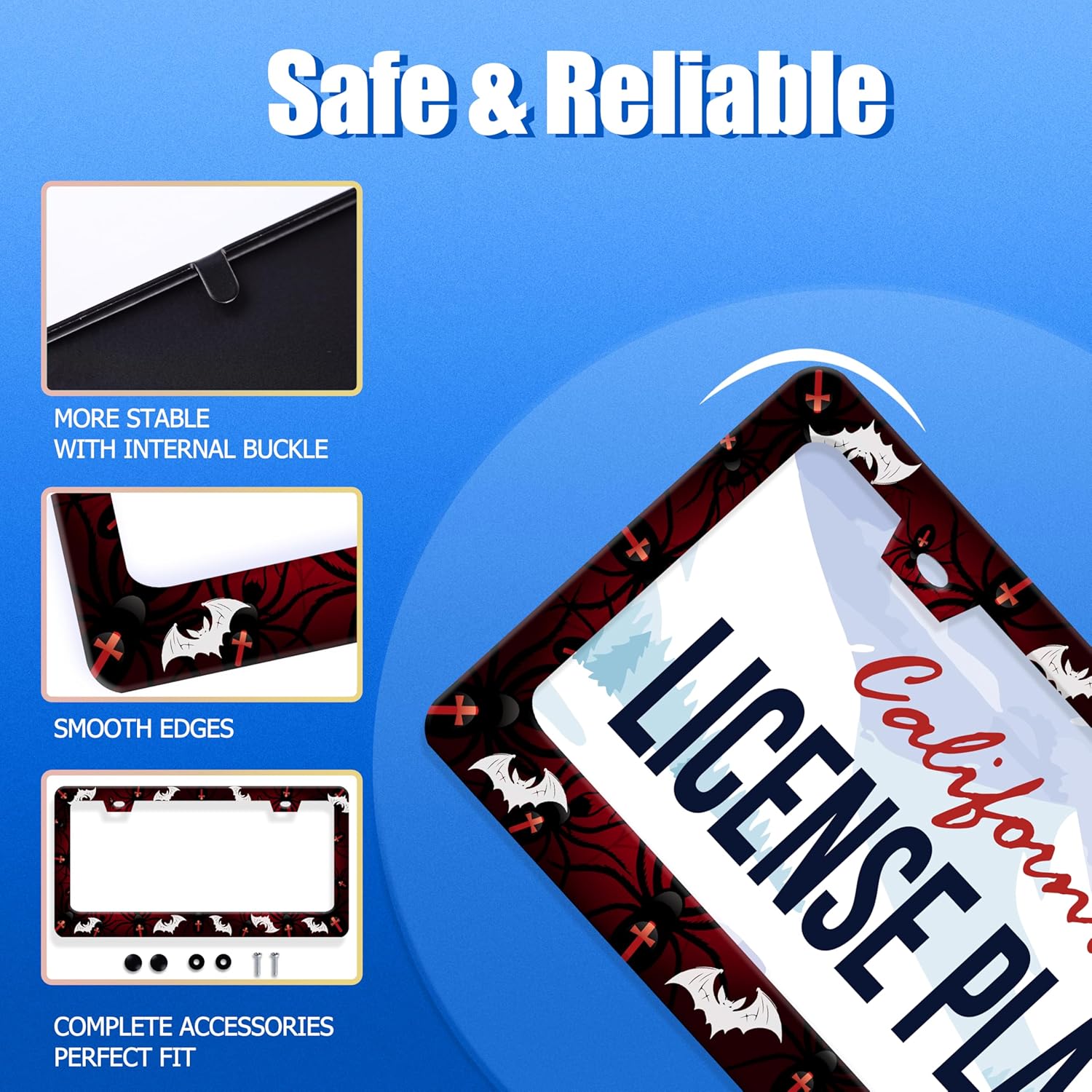 Bats License Plate Frame Spiders Web License Plate Holder Gothic Funny Car Accessories Decoration 12.3" x 6.3" for Men Women