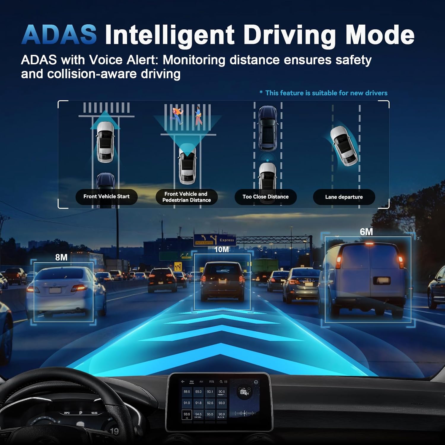 - 【ADAS + BSD/LCA | Smart Driving Alerts, Safer Journeys】Stay safer with intelligent driving assistance features like Lane Departure Warning and Forward Collision Warning. The system also includes Blind Spot Detection (BSD) and Lane Change Assist (LCA) via the rear camera, Perfect for new drivers or anyone seeking a smarter, safer dash cam experience.(Please note: Enabling front-camera ADAS will automatically disable rear-camera BSD and LCA functions)