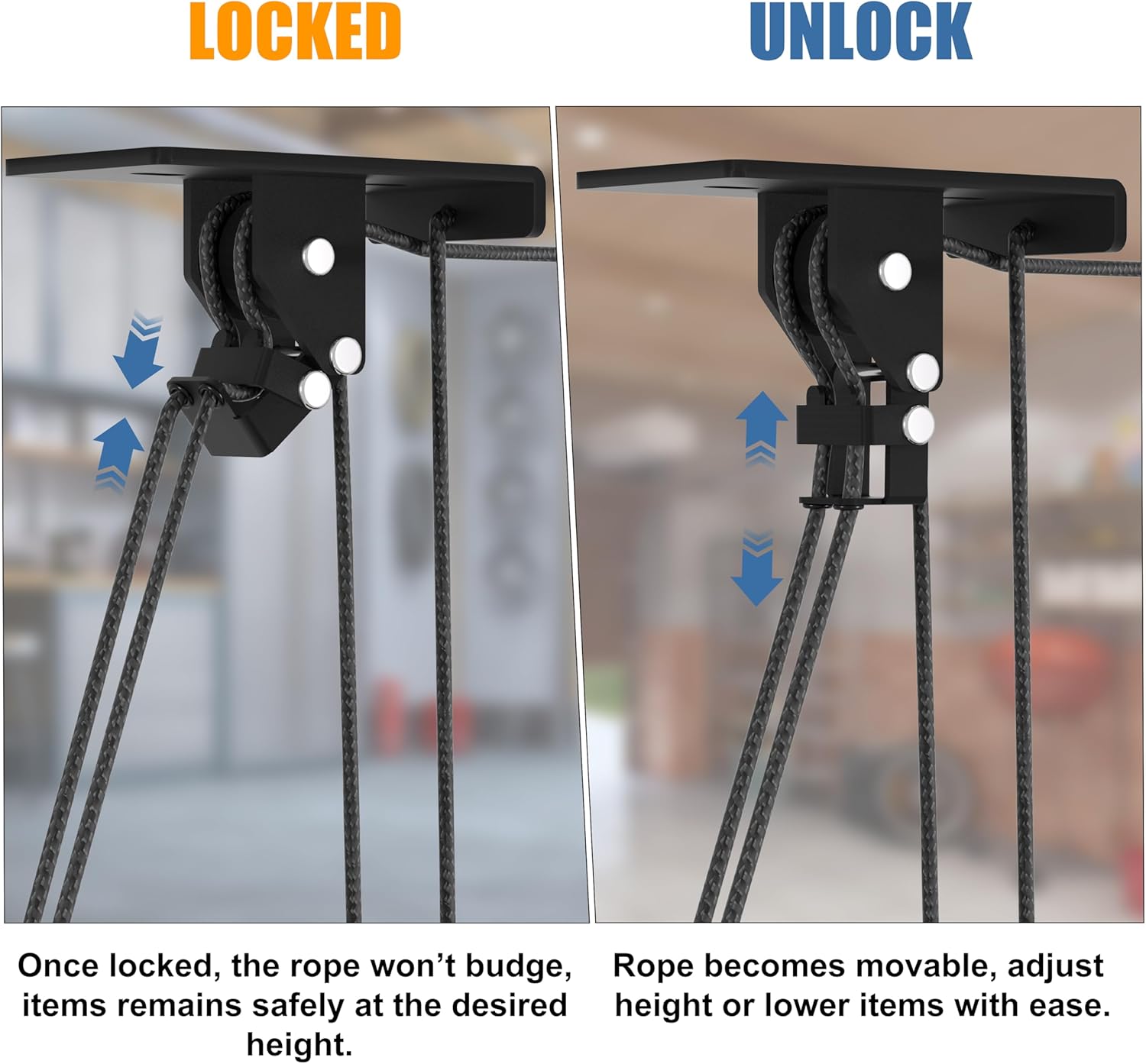 - QUICK & EASY INSTALLATION: Mount directly onto ceiling joists using the included premium hardware. From setup to daily use, our garage hoist for cargo box designed every detail to be intuitive and lasting.