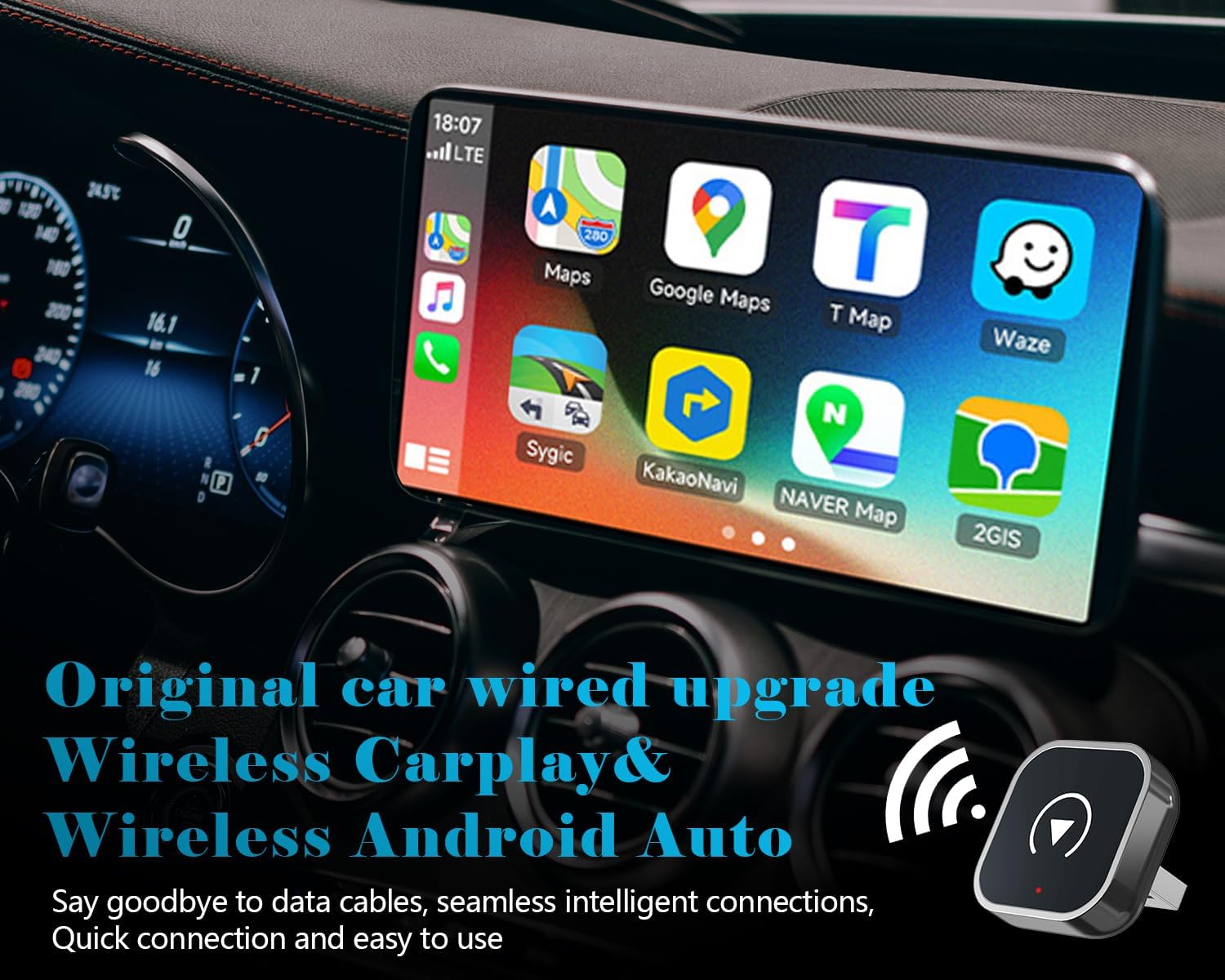 • Seamless Wireless CarPlay Connection in Seconds – Easily turn your wired CarPlay into a wireless hub. Instantly access your favorite apps like Spotify, Google Maps, and Phone calls without having to connect your iPhone every time.