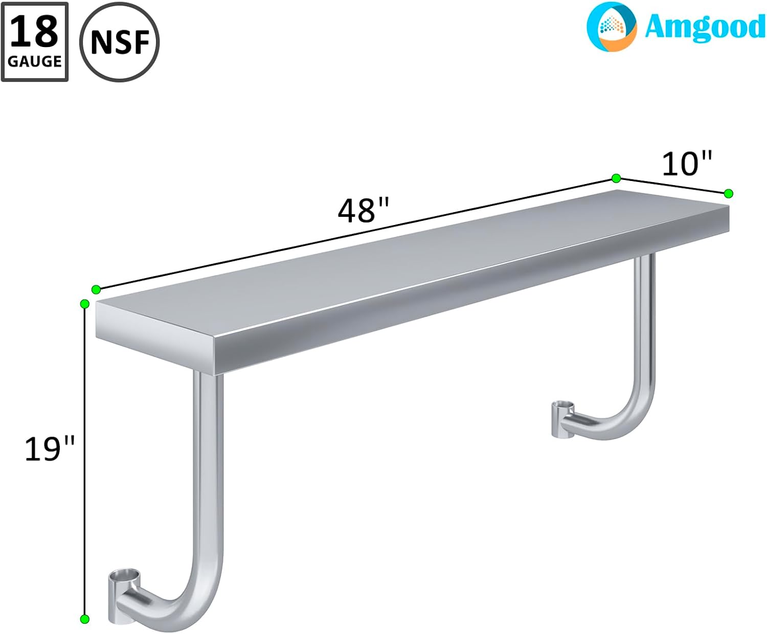AmGood 13.5 in. x 49 in. Stainless Steel Adjustable Work Surface for 30 in. x 48 in. Equipment Stand