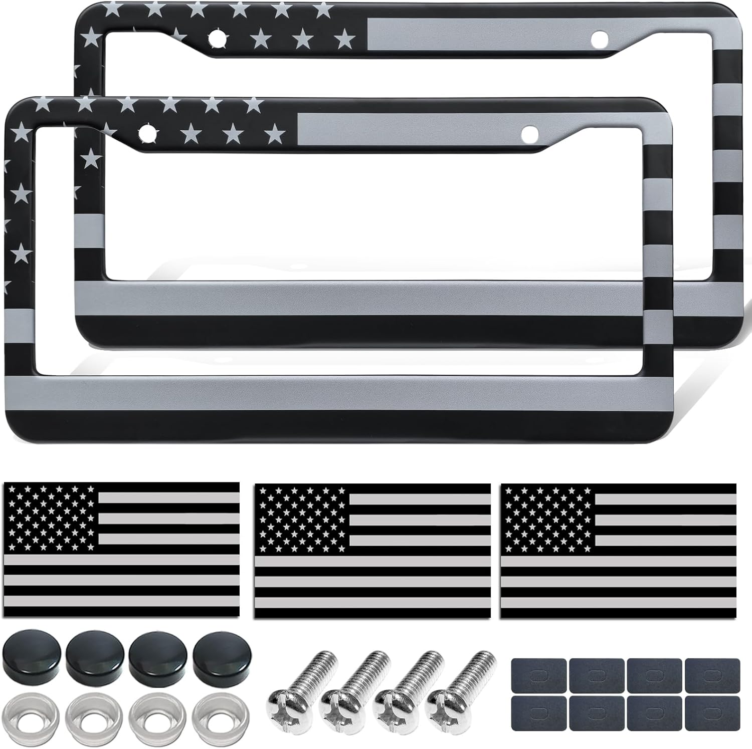 - Heavy-Gauge Stainless Steel Frame: Crafted from premium-grade stainless steel for exceptional strength and outstanding resistance to rust and corrosion. Features smooth, rounded edges to protect your car's finish and your hands on these American flag license plate frames