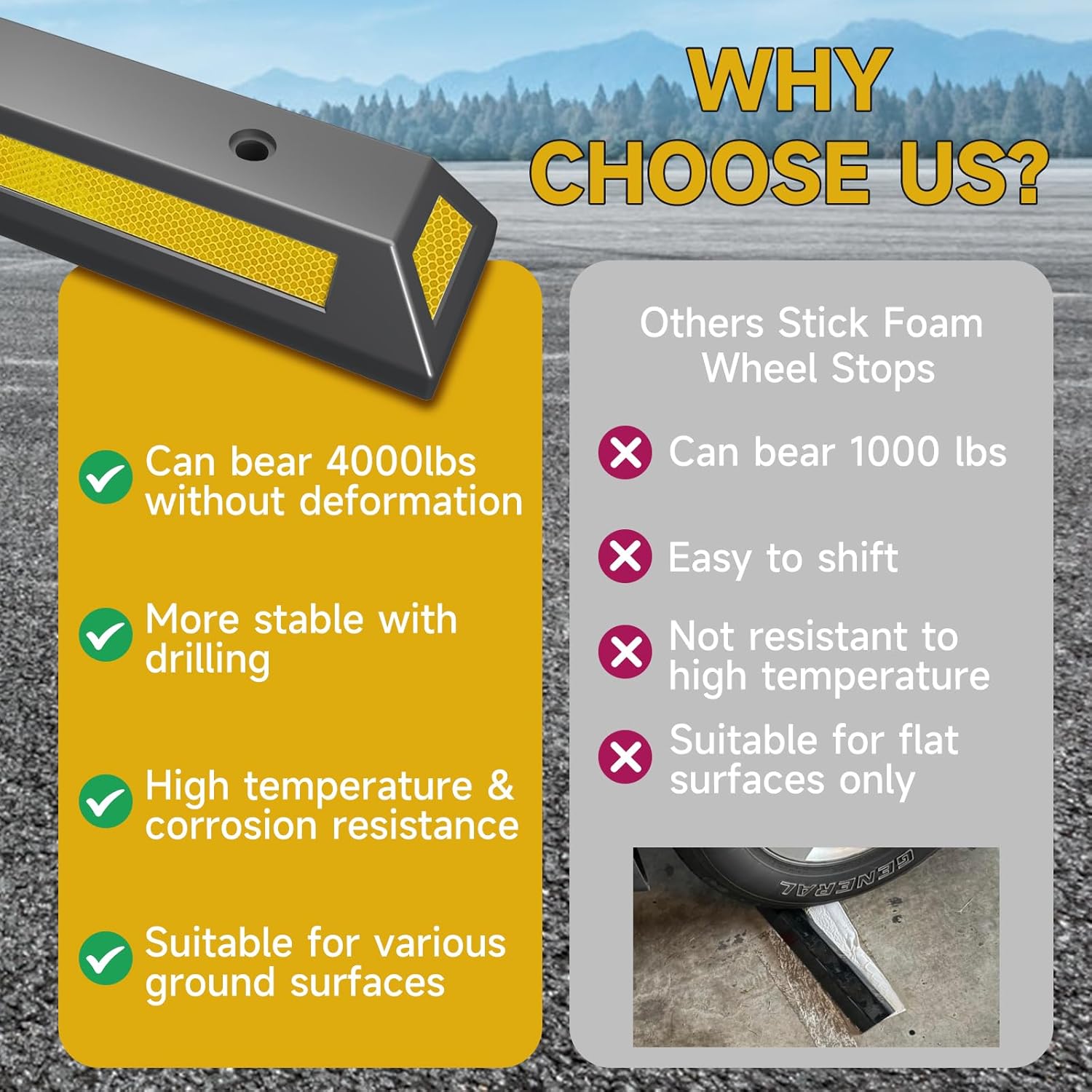 2Pack Parking Stopper for Garage Parking Aid for Cars with Reflective Stripes Garage Bumpers for Parking Car with 4PC Expansion Screws 18" L x 2" H