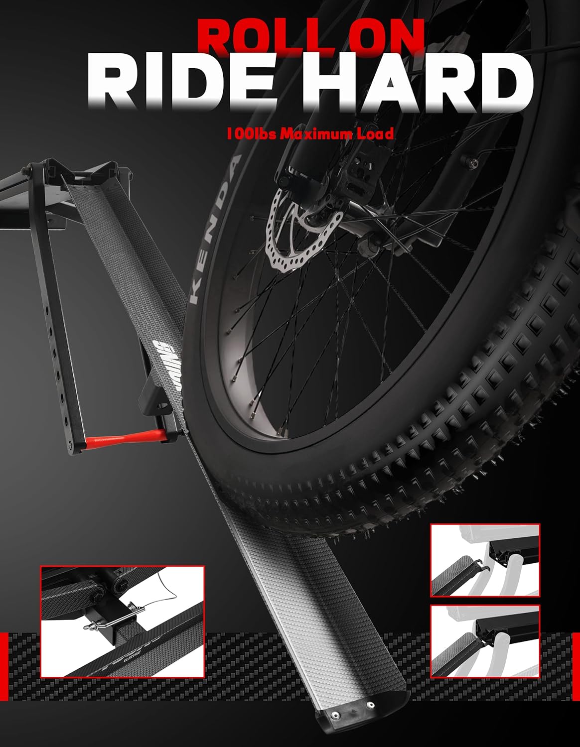 - ăUser-Friendly Featuresă Includes integrated loading ramp for easy bike mounting (supports heavy e-bikes) and 90° foldable design that clears your trunk space. Optional brake light compatibility (sold separately) enhances night visibility. Quick-install hitch system gets you road-ready in minutes.