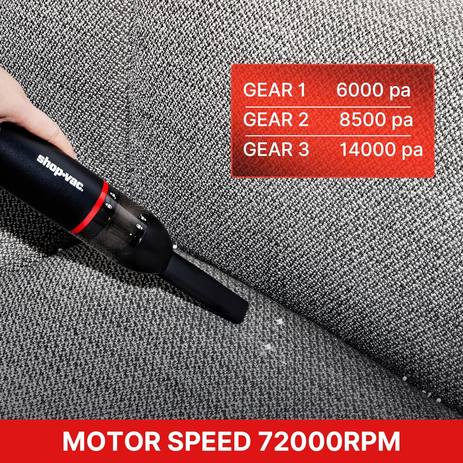 - Powerful 3-Gear Suction & High-Speed Motor: Experience exceptional cleaning power with 3 adjustable suction levels: 6000Pa for light debris, 8500Pa for everyday messes, and a mighty 14000Pa for stubborn dirt. Driven by a high-performance 72000rpm motor, it efficiently tackles dust, sand, and crumbs.