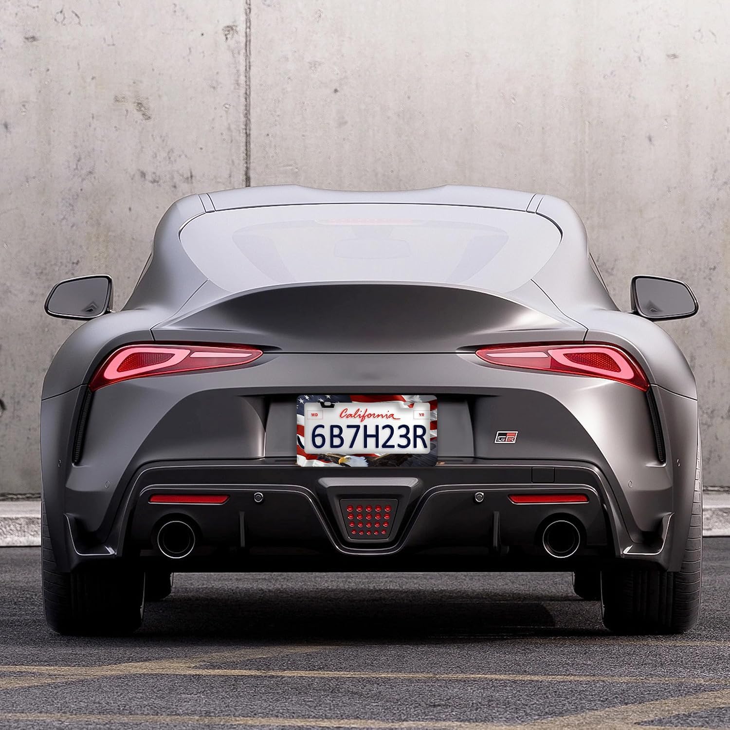 American Flag Eagle License Plate Frames - 2 Pcs Set 2 Holes Stainless Steel Metal Auto Car Accessories Decoration License Plate Frame Cover Size 6.3" x 12.2" Fit US Vehicles for Women Men Gift
