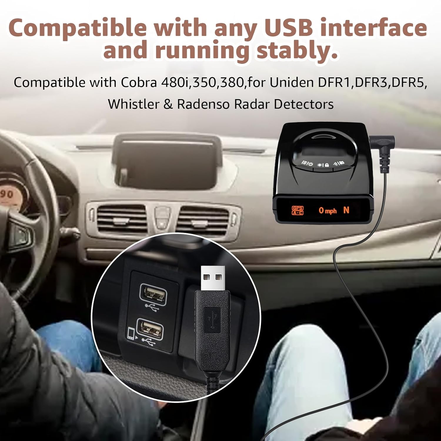 - Broad Compatibility:Compatible with a wide range of radar detectors from Cobra (RAD 350/380/450/480i/XRS series),Uniden (DFR1/DFR3/DFR5),Whistler,Radenso Pro M,and other DC3.5 plug models,this cable offers seamless connections;(Note:Not compatible with Valentine One.)
