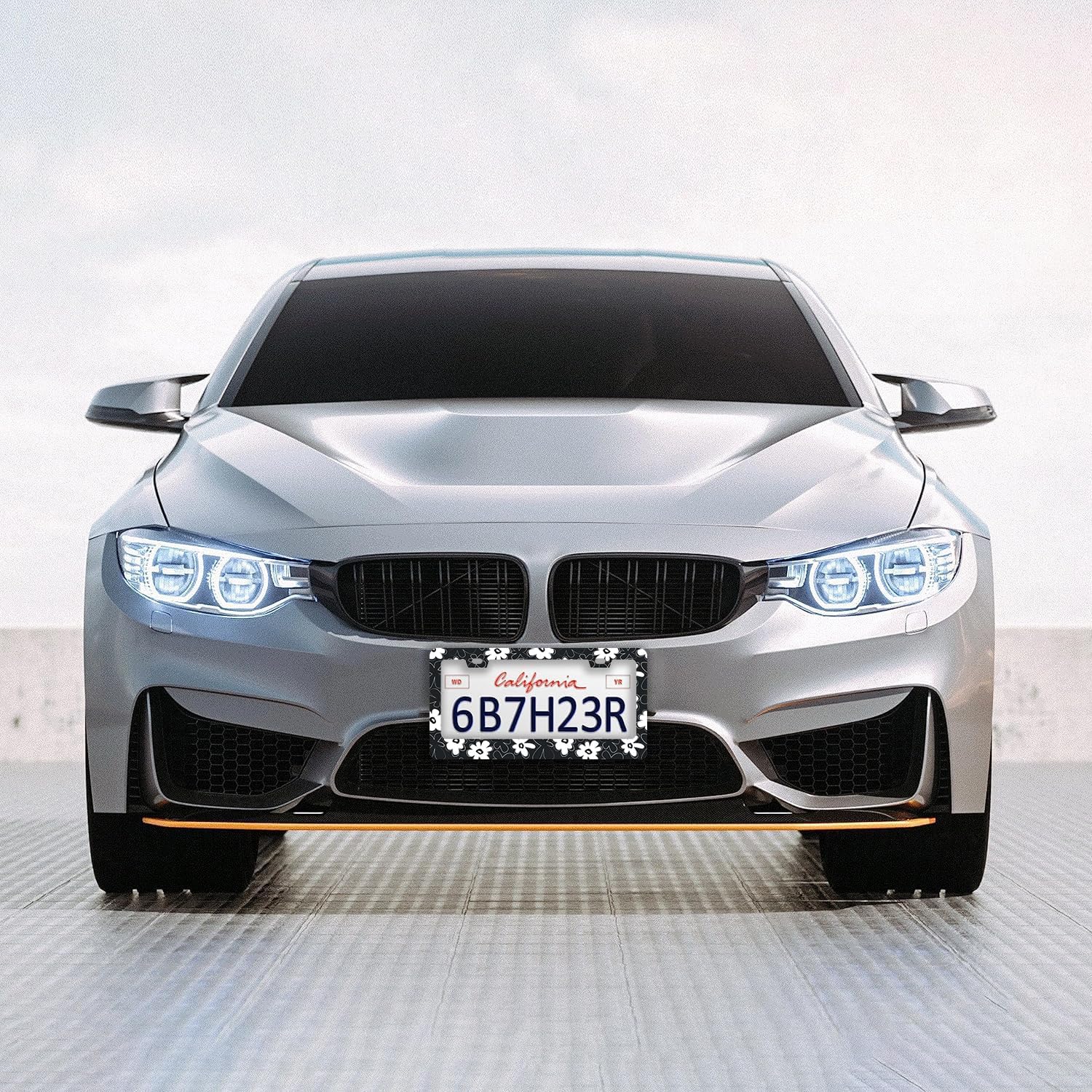 Black and White Flowers License Plate Frames - 2 Pcs Set 2 Holes Stainless Steel Metal Auto Car Accessories Decoration License Plate Frame Cover Size 6.3" x 12.2" Fit US Vehicles for Women Men Gift