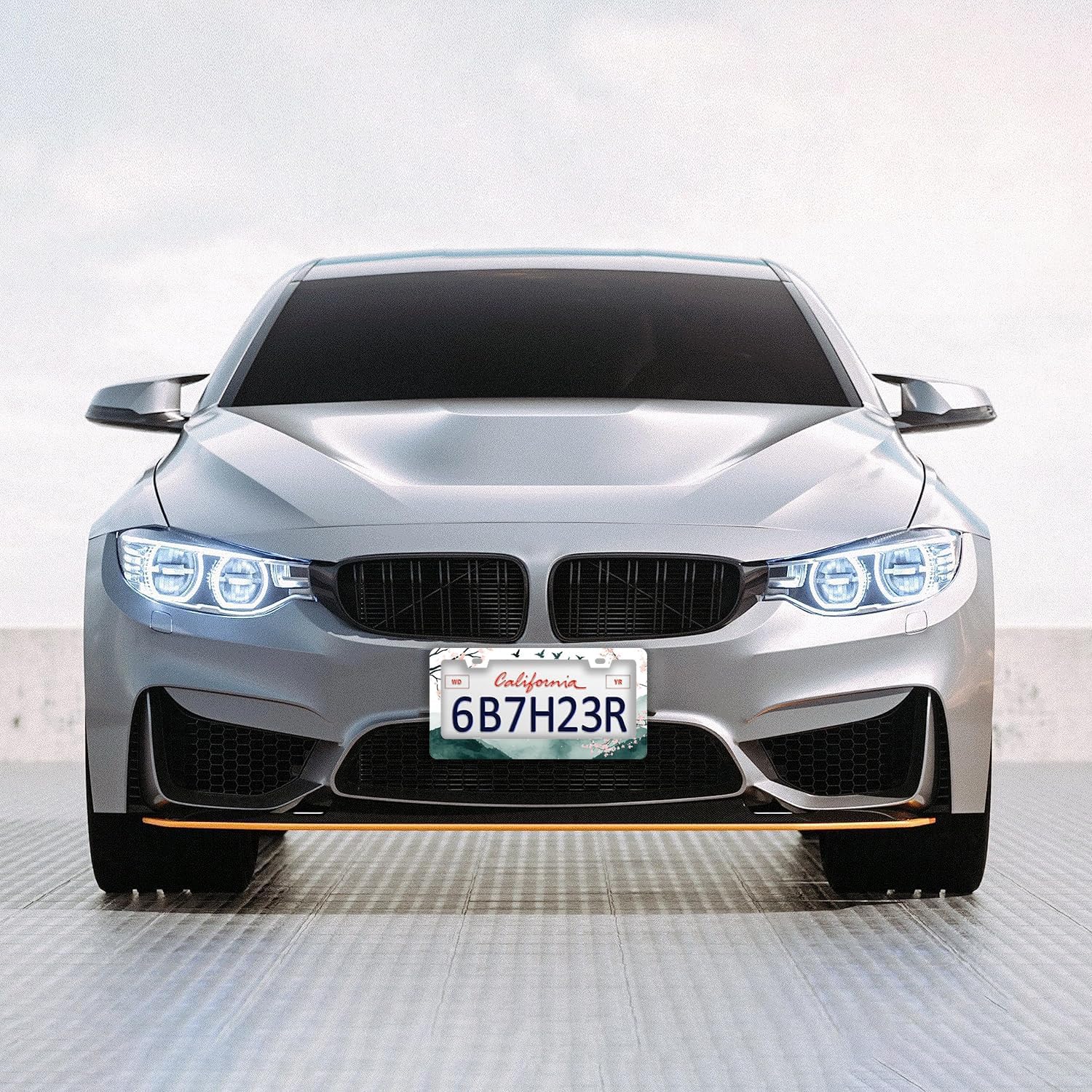 Mountains Cherry Blossom License Plate Frames - 2 Pcs Set 2 Holes Stainless Steel Metal Auto Car Accessories Decoration License Plate Frame Cover Size 6.3" x 12.2" Fit US Vehicles for Women Men Gift