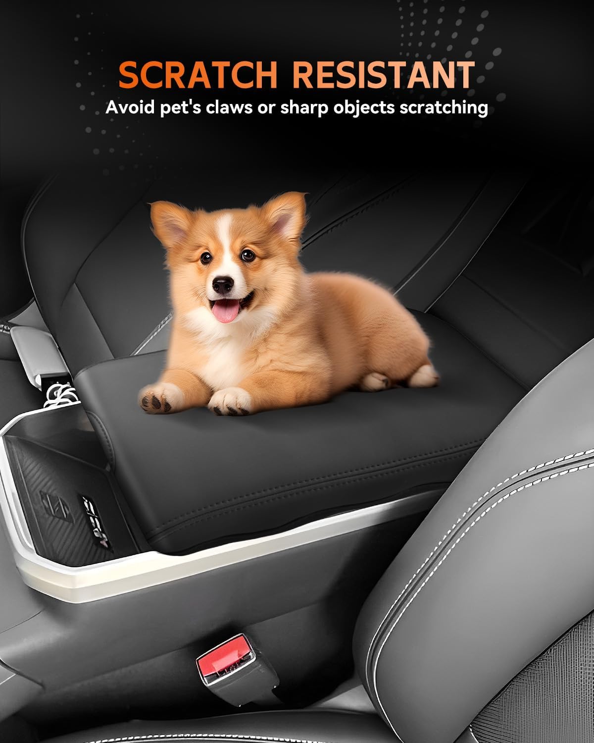 - [Easy To Install] Designed with a Velcro strap to secure it to the center console (no tools required). With super stretch and pull resistance, it will not change the open/close function of the armrest box.