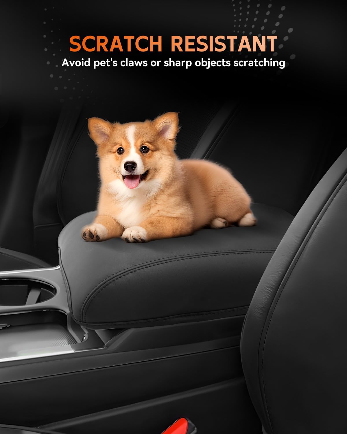 - [Excellent Scratch Resistance] The car center console mat is made of high quality PU microfiber leather, thick enough to keep out pet paws, dust and sticky fingers. The surface is waterproof, wear-resistant and durable, breathable, light weight and easy to wipe clean of dirt.