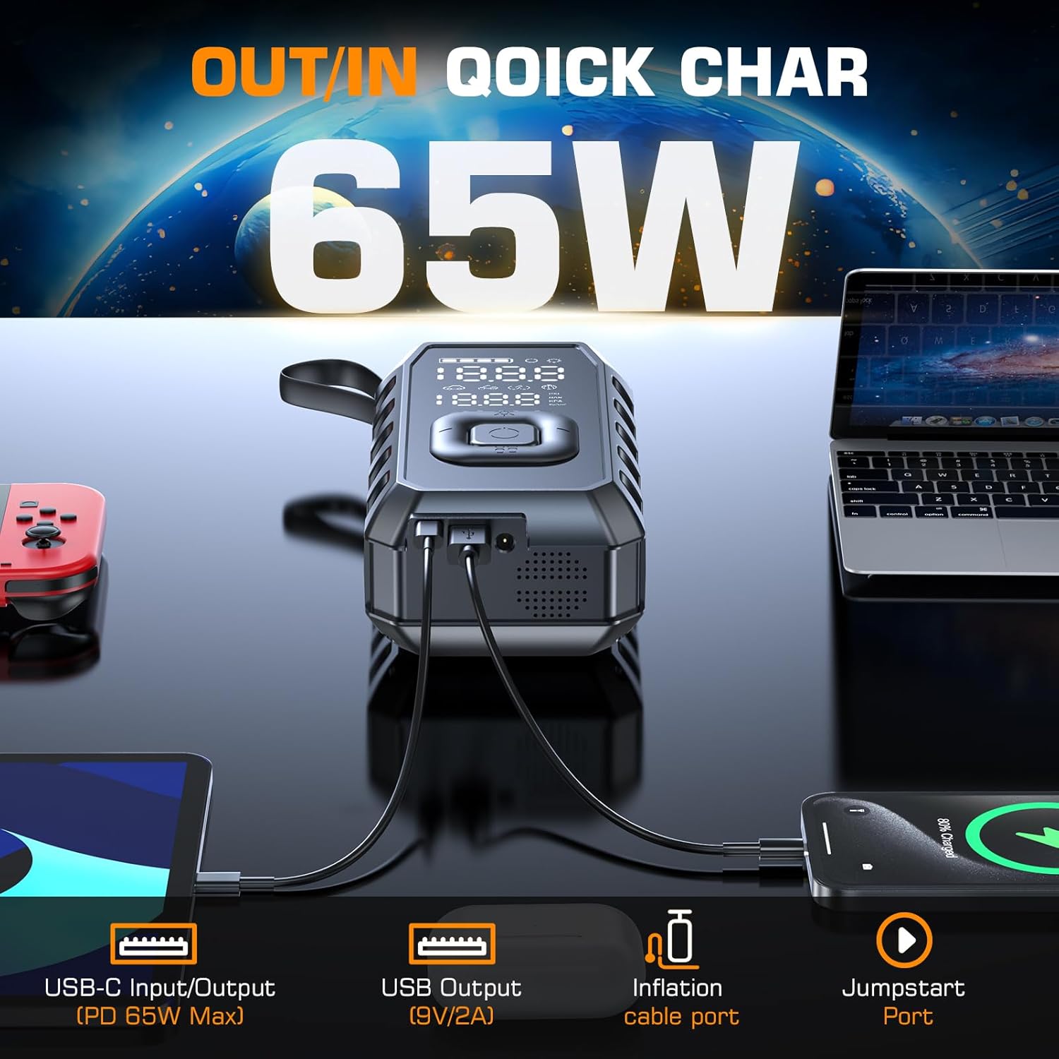 - 【65W PD fast charging technology】The Cordless Air Pump Type-C two-way fast charging, equipped with a C to C fast charging cable and an A to C ordinary USB cable using a PD65W fast charger. It only takes 1 hour to charge from 0% to at least 90%. It can efficiently charge