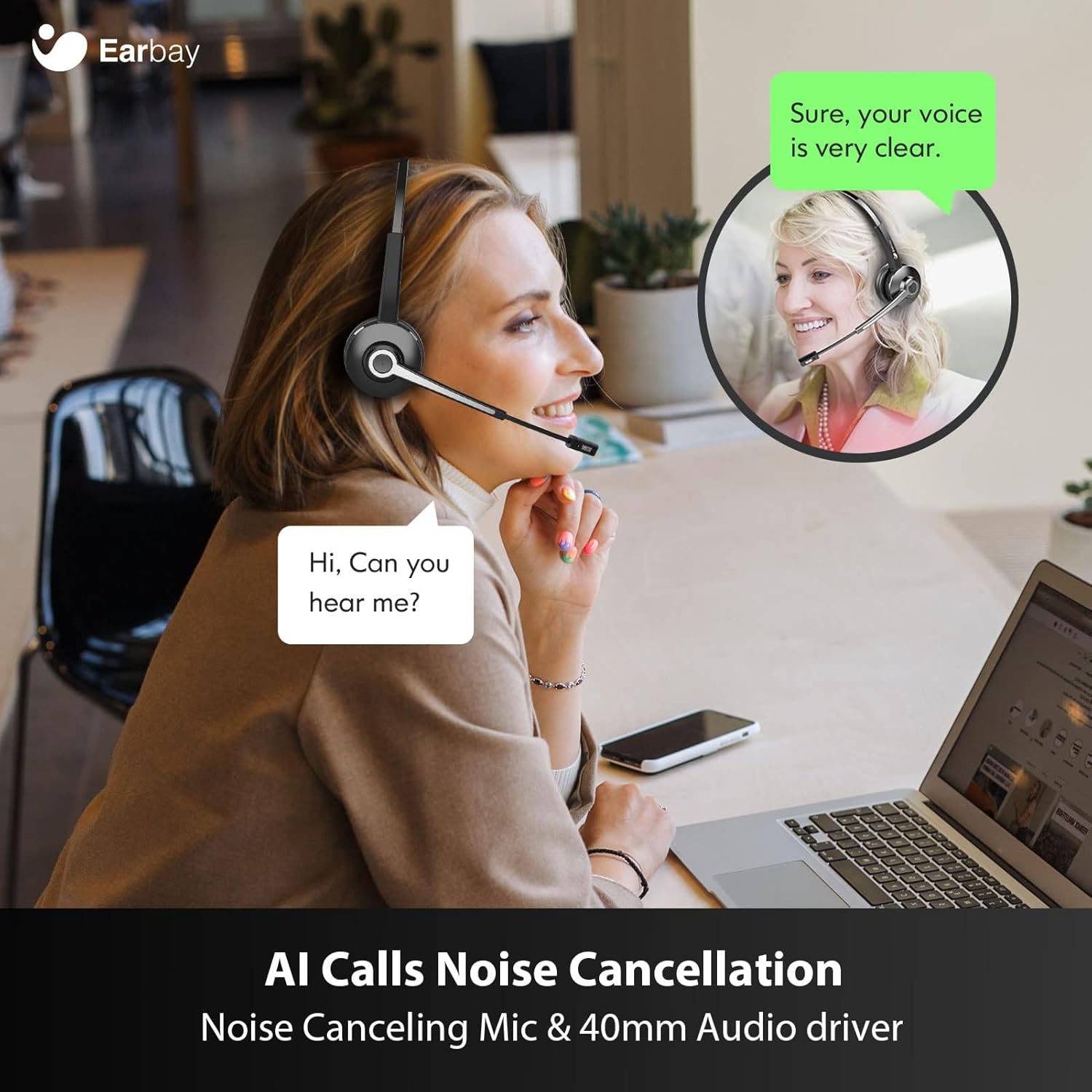 - 【Intuitive Mic Mute & Controls】Easily mute the microphone or adjust volume during calls (Skype, Zoom, Teams) with dedicated controls of the wireless headset with mic for work. Designed for efficiency in professional and personal communication.