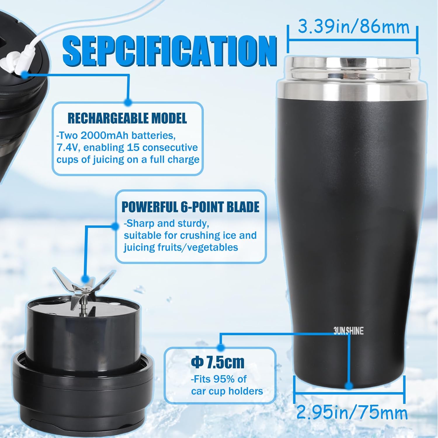 - All-Day Chilled Refreshment:Built with rugged double-walled stainless steel, this blender cup locks in cold for up to 24 hours. Whether you're commuting, hitting the road, or exploring outdoors, enjoy icy-cold beverages from morning till night.