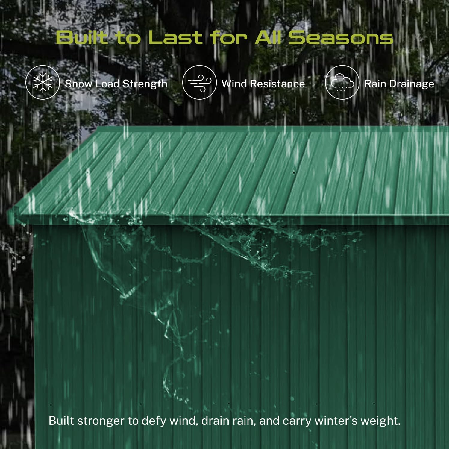 - 【Ultra-Durable for Harsh Climates】Constructed with 24/34-gauge galvanized steel, this weatherproof garden shed resists rust, 6 Beaufort winds (24-30mph), and heavy snow, ensuring a 10-year lifespan in coastal or snowy regions