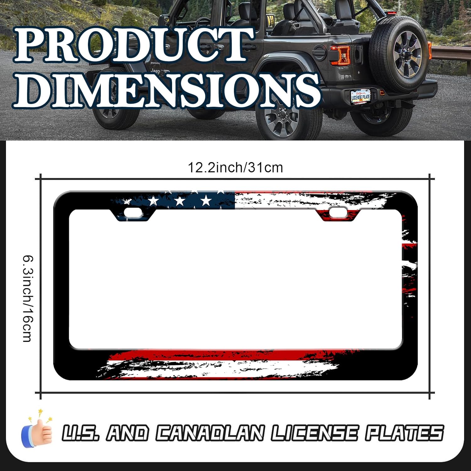 - Standard Car Tag Frame Size: The license plate frame measures 12.3 x 6.3 inches and fits standard US and Canadian license plate frames; Make your car more stylish, and stand out from the crowd
