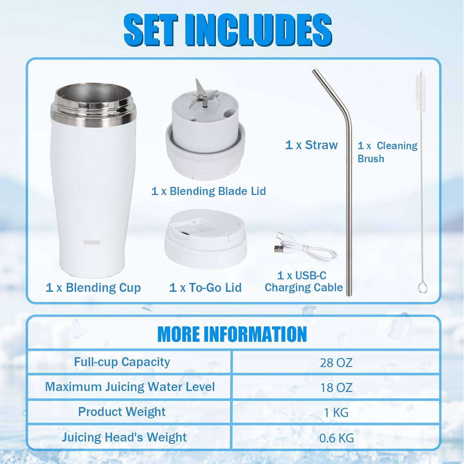 - Dual-Lid Versatility for Every Need:3UNSHINE comes with two interchangeable lids—a powerful electric lid for blending on-the-go and a lightweight, travel-friendly lid that's 60% lighter than motorized options. Easily switch between blending fresh smoothies and securing your drink for hassle-free travel.