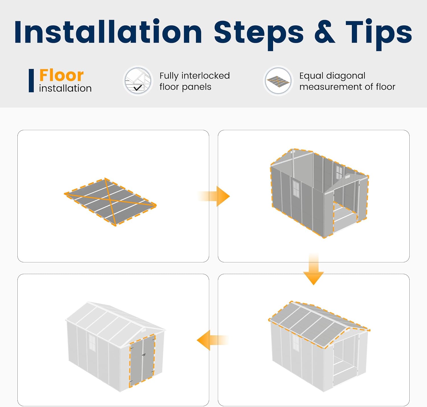 - HIGH-QUALITY MATERIAL: This outdoor storage shed is made of 12mm high-quality polypropylene resin plastic. Our resin storage shed has good characteristics such as recyclability, corrosion resistance, waterproofing, and rust prevention