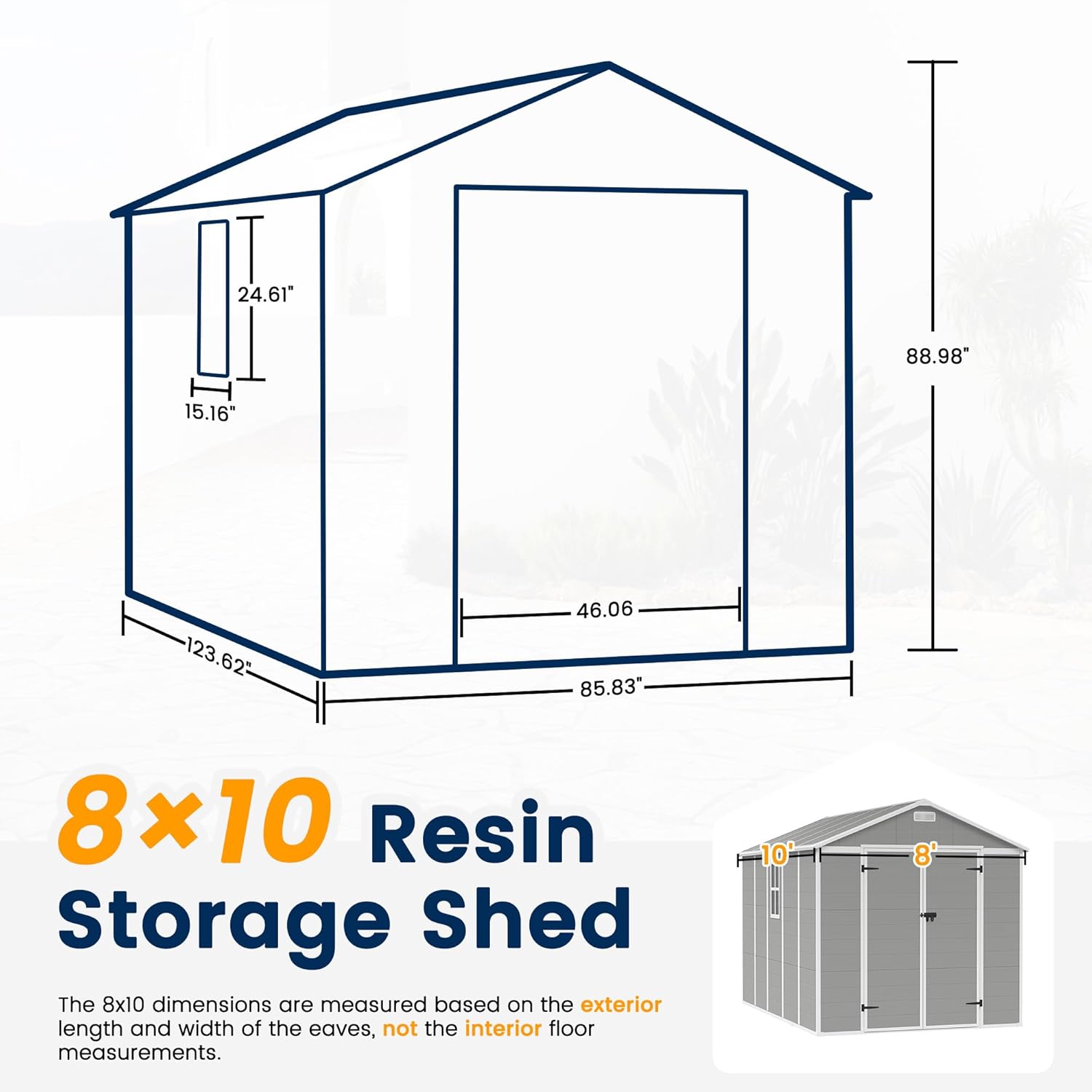 UDPATIO Storage Shed 8 x 10 FT, Resin Outdoor Garden Sheds with Floor Plastic Patio Outdoor Storage with Lockable Door for Tool, Bike, Garbage Gray White