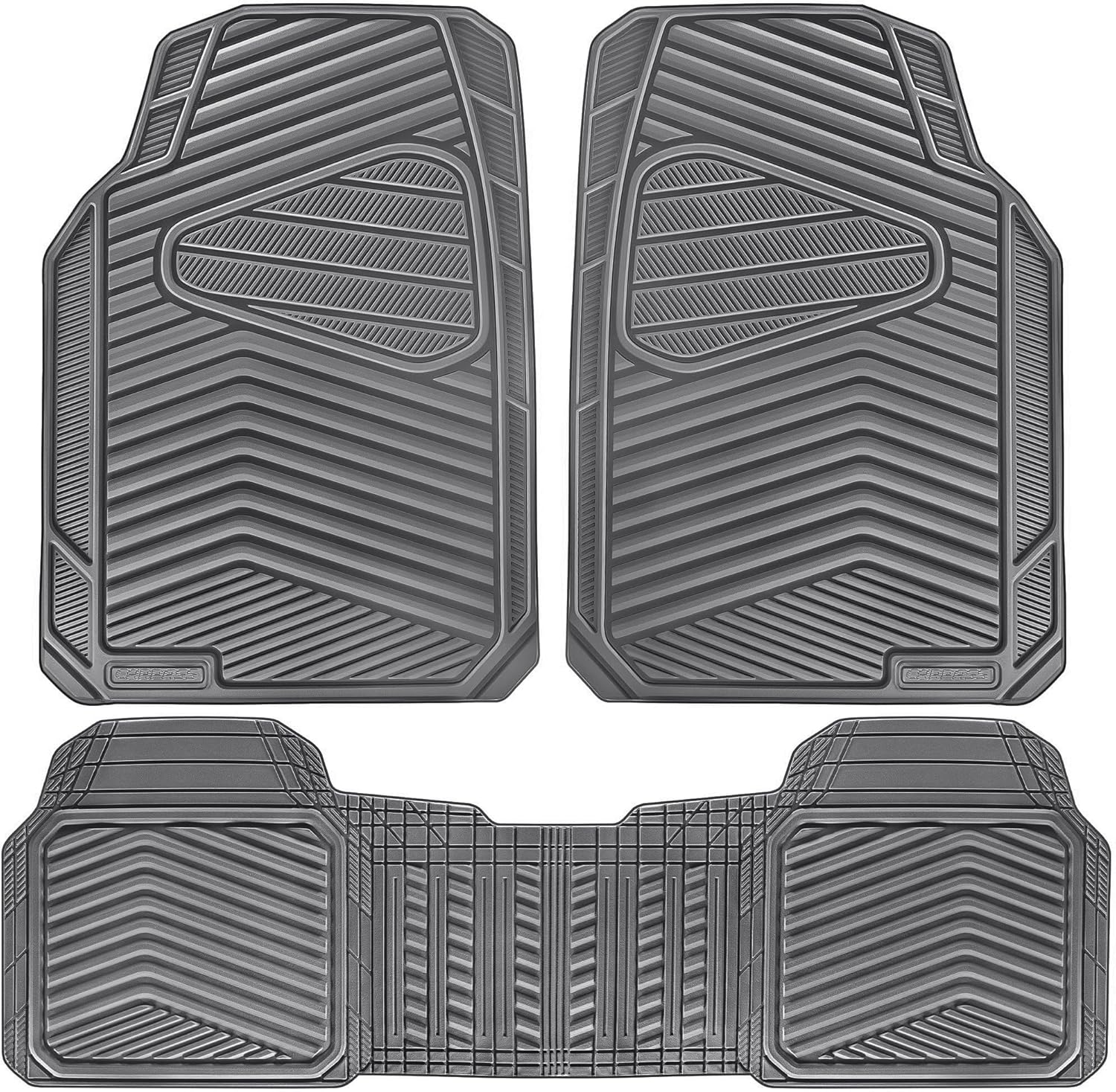 CAR PASS Rubber Car Mats,Car Floor Mats All Weather,Car Mat Full Set 3 Piece,Grey Waterproof Automotive Floor Mat Trim to Fit for Cars Sedan SUVs Small Trucks,Heavy Duty Anti-Slip Easy Clean, All Gray