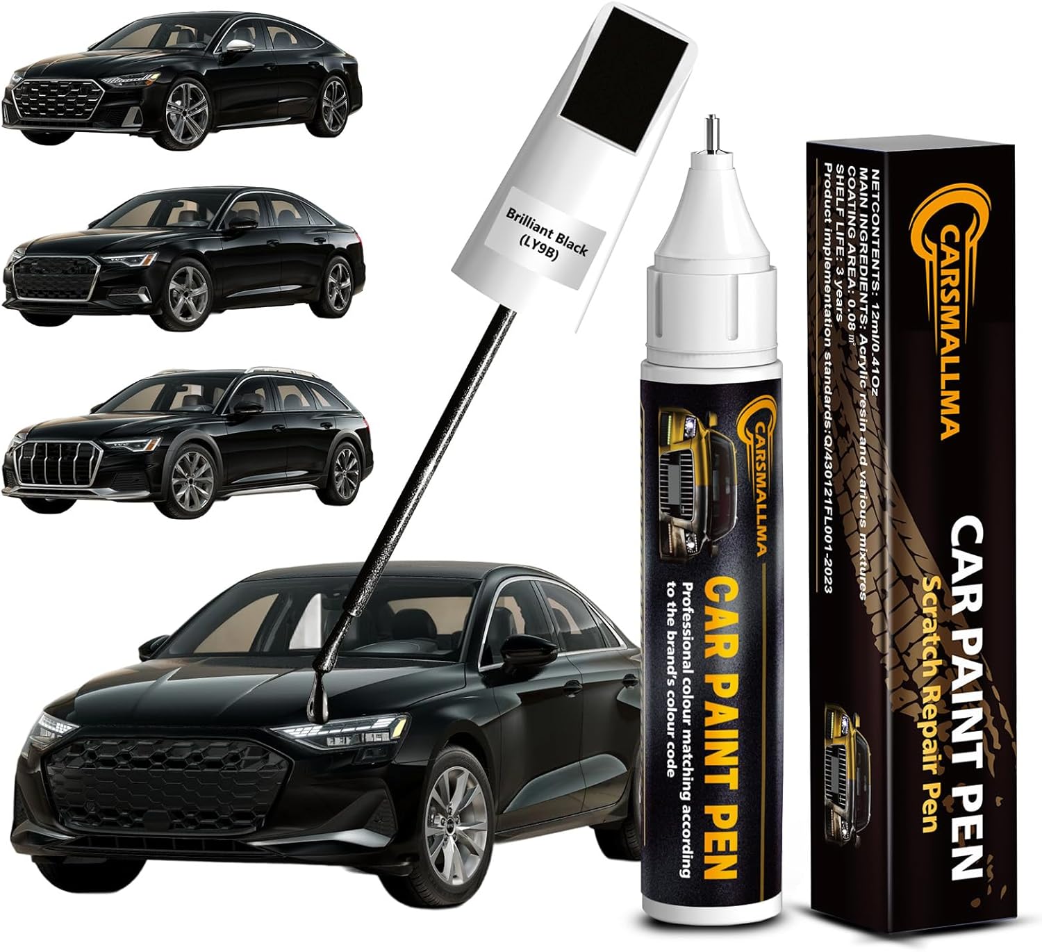 - Exact Color Match: Carsmallma car touch up paint(LY9B Brilliant Black) is expertly formulated for Audi vehicles, including All Models. The automotive paint is meticulously crafted and rigorous testing to match the original factory finish, making scratches, chips and peeling paint hardly noticeable. Whether on bumpers or body surface, it delivers a perfect finish