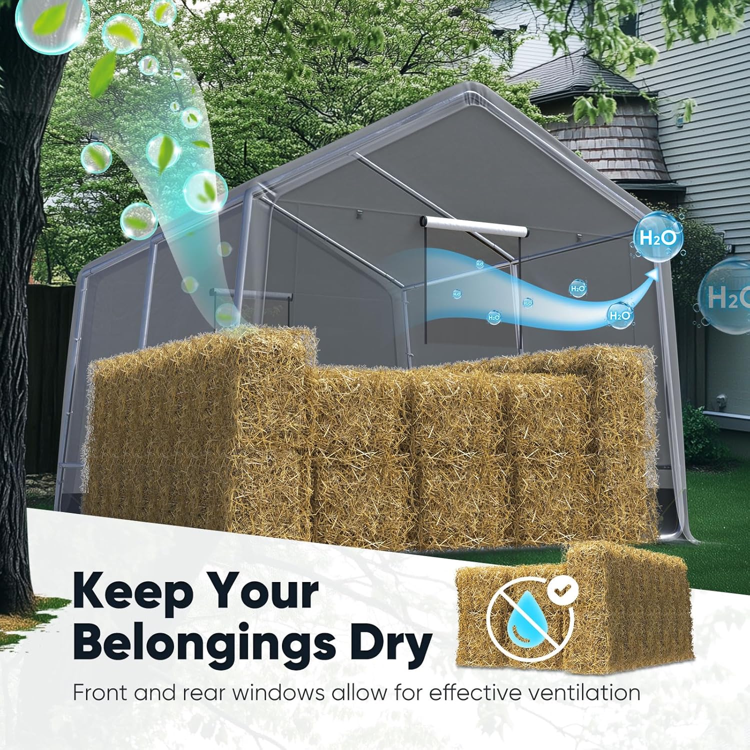 - 【Multiple Uses】This garden storage shed can be a motorcycle storage shelter, ATV storage shed, bike storage tent, or small vehicle garage shelter. It is also suitable for small lawnmowers, firewood or any other gardening tools.