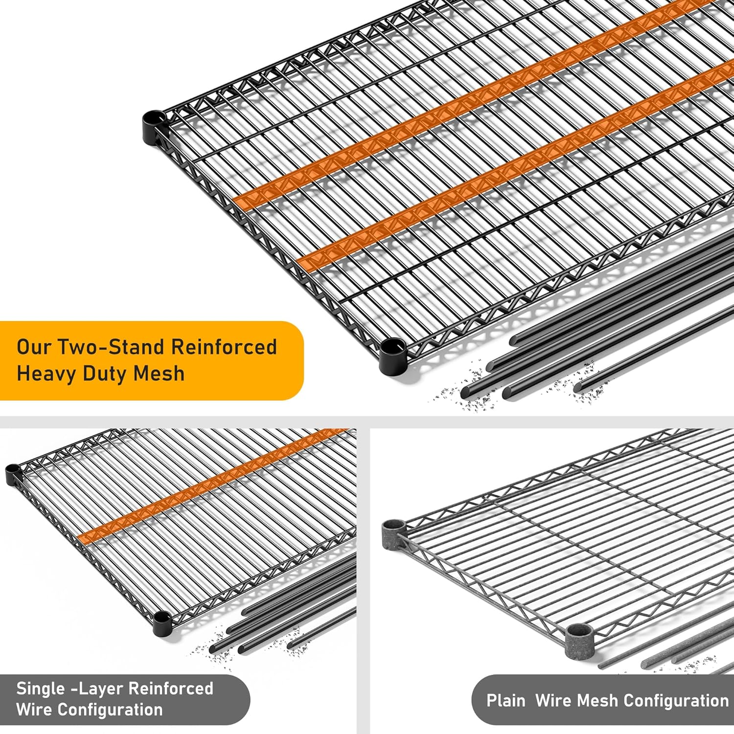 - Flexible L-Shaped Design:Sturdy, rust-resistant steel with powder coating.The metal shelves can be arranged in an L-shape to fit corner spaces. Note: Not designed to split into two separate units.