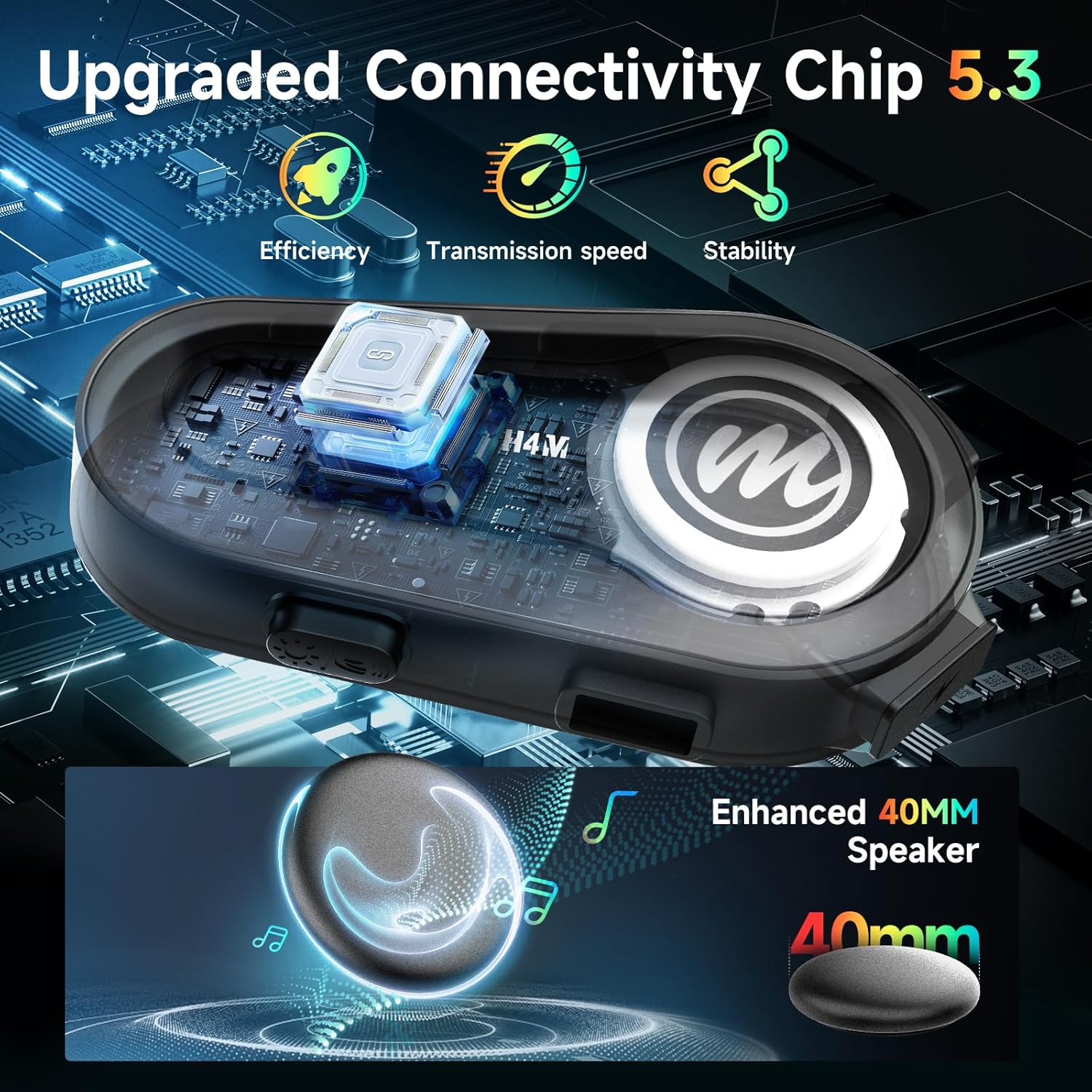 - 【Single Person Use With 5.3 Chip & 2 Smartphones Conncetion】Moman H4M adopts 5.3 chip connection technology, which effectively reduces disconnection and noise caused by interference in the 2.4GHz frequency band. In addition, H4M also can simultaneously connect two smartphones and meet different needs such as navigation/calling/listening to music at the same time.(!!!Note: This product does not have the intercom function).