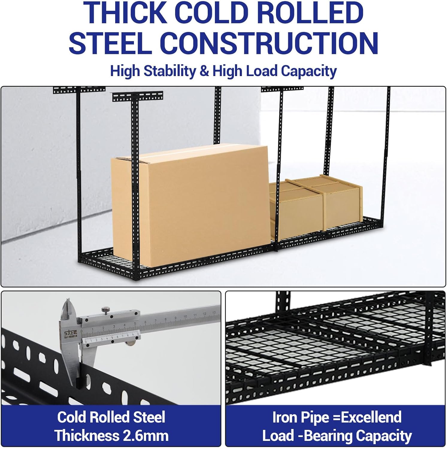 - ✅ Massive 53 Cu Ft Storage & Space Maximizer: Expertly utilizes wasted ceiling space (96"x24"x40") creating 53 cubic feet of organized storage. Frees up valuable garage, basement, or shed floor space by moving clutter overhead. The open grid design allows easy visibility and access to stored items.