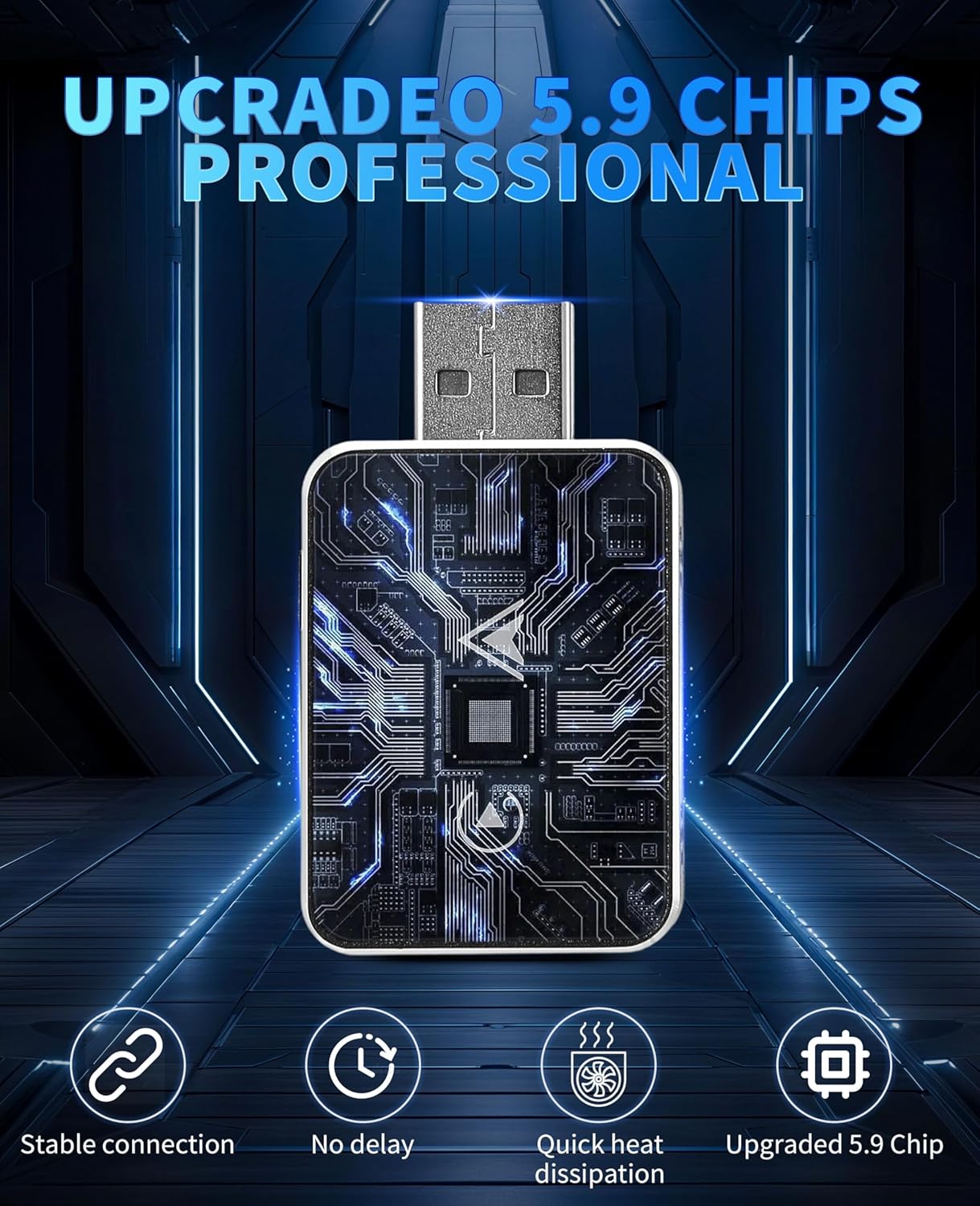 - 【Efficient heat dissipation & durable construction】: Adopting high-quality lightweight aluminum alloy shell & 3 heat dissipation holes, excellent heat dissipation performance, can prevent overheating during long-term use, and protect your car's USB port. After more than 10000 plug and unplug tests, the mini wireless CarPlay adapter is sturdy and reliable. This mini size cleverly integrates into any car interior without taking up space.