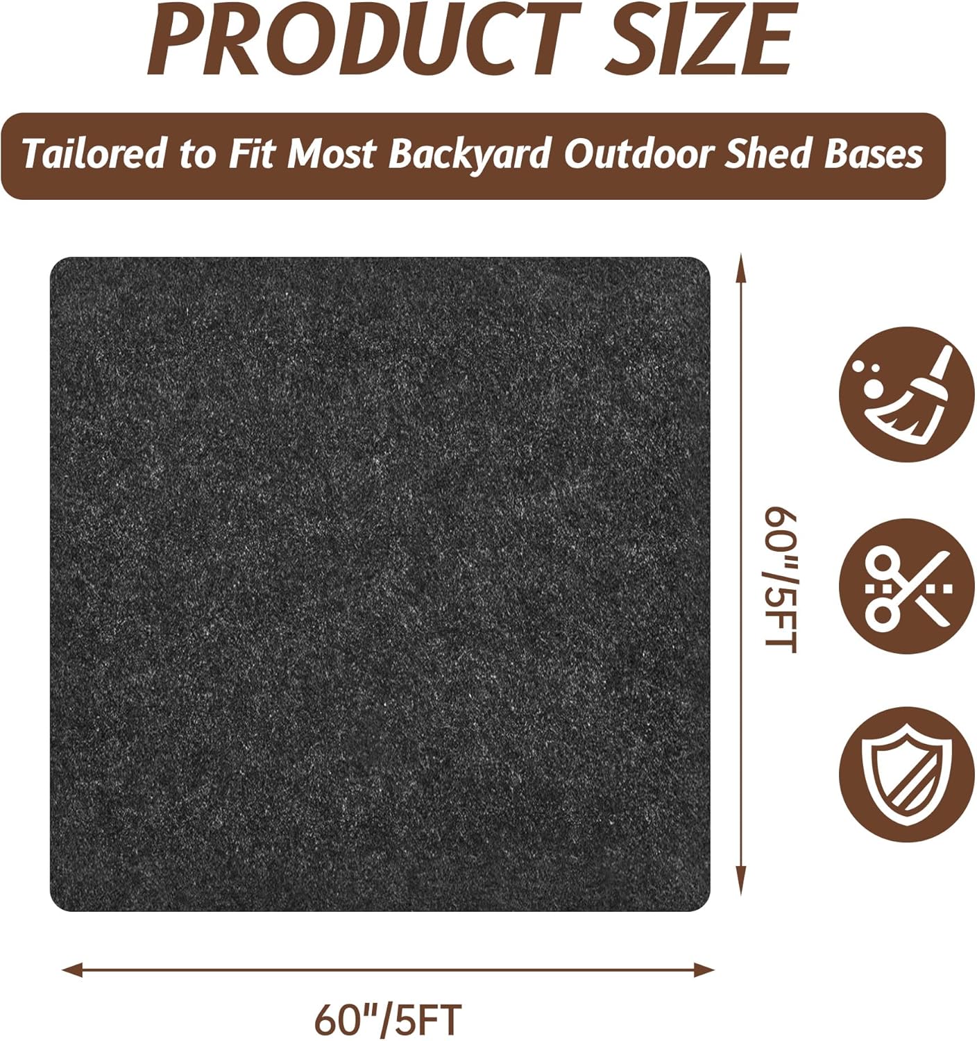 - Fits Standard 5x5 ft Applications: Measuring approximately 60 x 60 inches, this mat is compatible with most 5x5 ft outdoor storage bases. Note: Shed or props shown in images are not included with the product