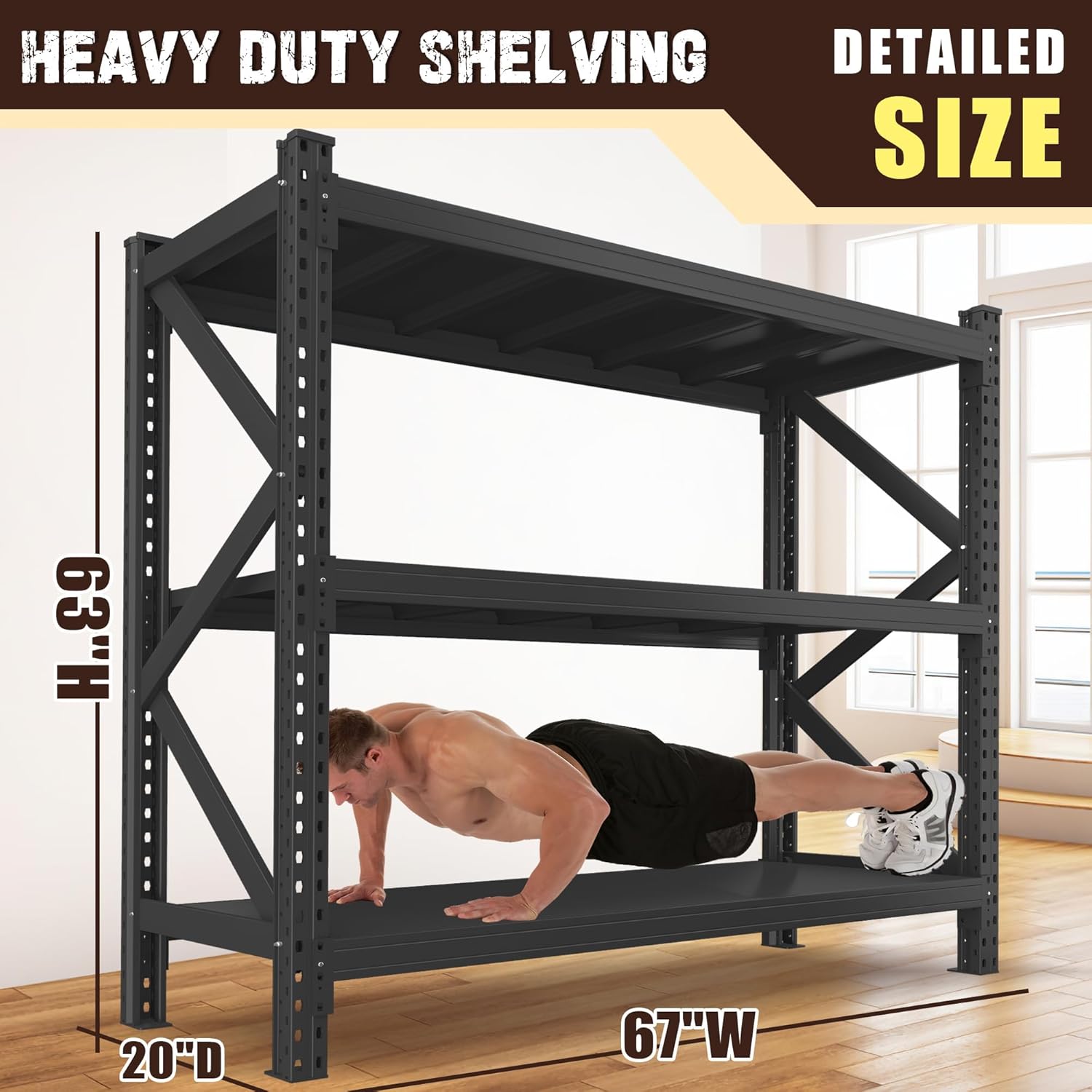 Heavy Duty Garage Shelving Unit - 8500 lbs Capacity, Industrial Metal Storage Rack, Adjustable Steel Rack for Garage, Warehouse, Basement, Pantry (67" W x 19.7" D x 63" H)
