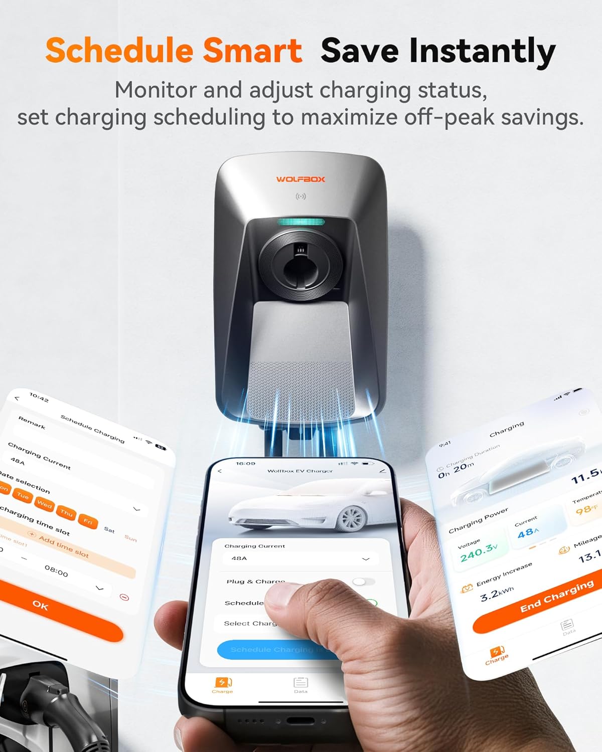 - Smart App Control: Schedule up to 4 groups of charging sessions (3 time slots per group), adjust amperage, and set custom times with rate-based cost calculations—optimize charging around off-peak hours to slash your energy bills.
